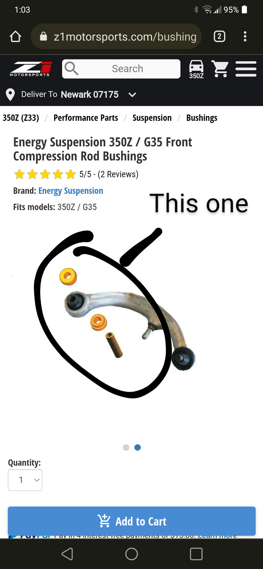 Ahhh, Ok. So you had gktech solid compression rod bushings. So the ball joints you installed are MOOG or did you replace the gktech compression rod bushings with Moog? I think you mixed the two terms up earlier. Inner bushing is compression rod, the outer (at the axle/wheel spindle) is the ball joint.