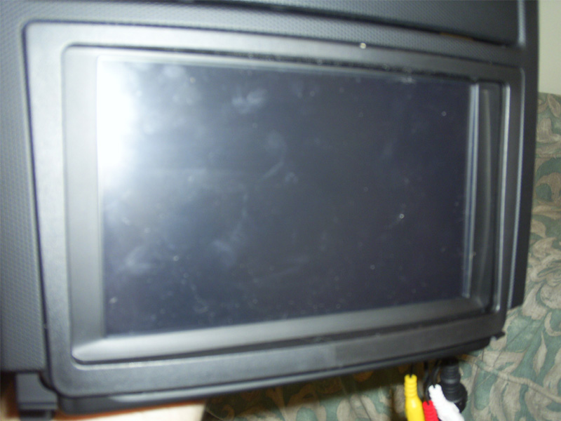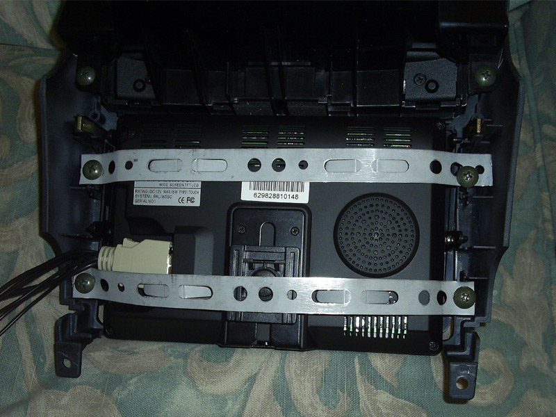 My first choice for the location was, naturally, in my empty nav pocket. Now I worked in car audio for some time recently and I feel I am a pretty crafty guy. But I could not get the monitor to fit in the pocket above the radio to my liking. Wanting to keep the door, and keep it operational and also didn't care for the reach, I sit all the way back, I decided to just go all the way and get rid of the radio. So I used a double din radio frame and some backstrap and just my luck, it fit like a damn glove. Check it out....