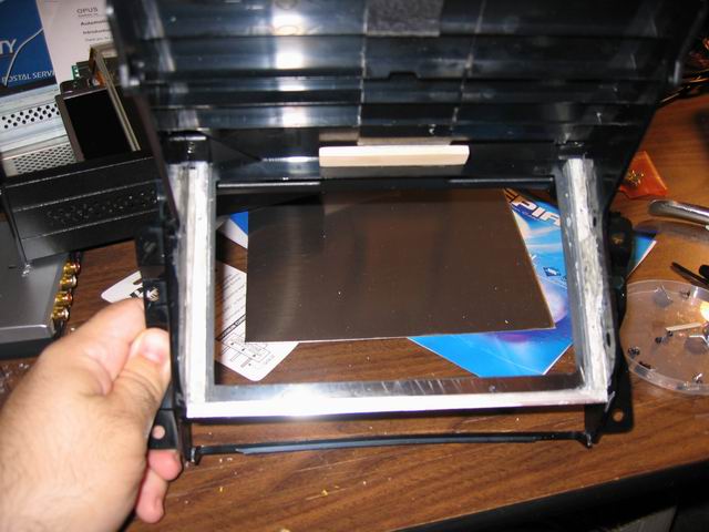 This is the cover reassembled after cutting. I left a couple pieces in the back and bent them up to recreate tabs for the case screws