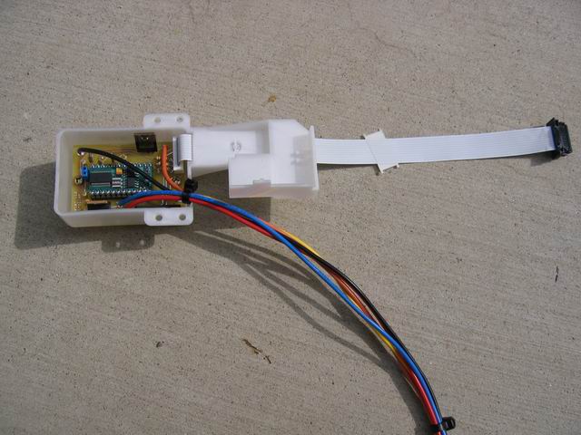 This is the door controller circuit that a friend and I designed. If there is interest we could do a writeup on how to build one. Also, I have 5 of the bare printed circuit boards left (I ordered 6 total) if anyone wants to buy one. Note that I cannot provide the plastic mounting bracket or the ribbon cable that connects to the door. Those came with the OEM controller which I wasn't able to get to work. It shouldn't be too difficult to figure out how to get by without those though.