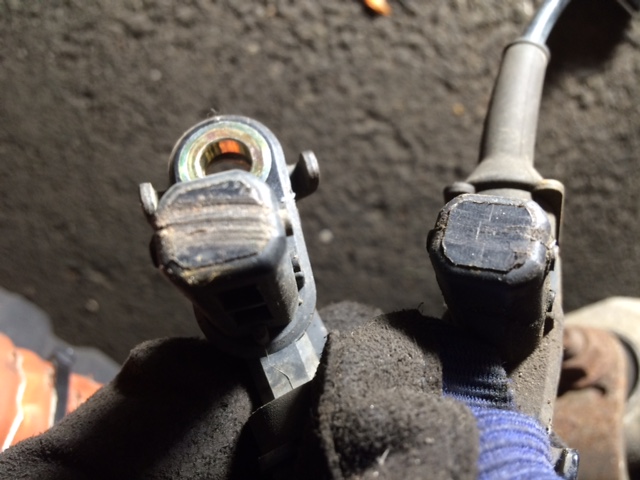 Checked the passenger front sensor today, noticed it was scuffed, took a pic to compare with the good spare sensor. Not sure if the sensor is good/bad, want to swap to the spare one, but the connector at the other end is stuck