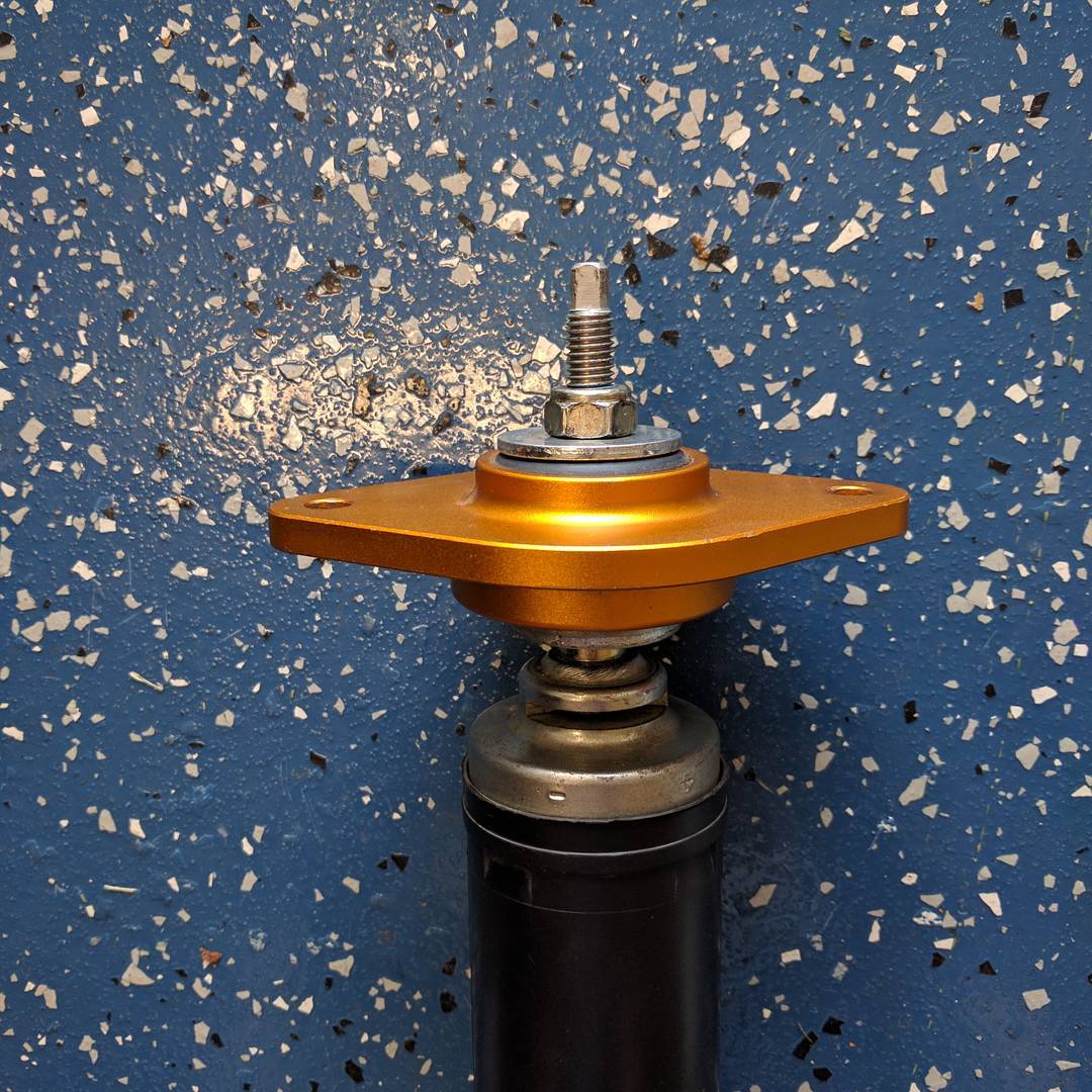 Additionally I made a few changes to the suspension, I left the rear springs on the car, the setup there, with hypercoils, will allow me to swap them out easier to a heavier spring. The other thing, also in the rear, is that the Konis use the OEM upper mount, and unfortunately when I put the OEM suspension back on #2, I used the OEM mounts, so I tried to use the mounts from ISC setup, but the shaft of the Koni is smaller than the ISC, so the bushing doesn’t work properly, I ordered the OEM bushings, and cut down the metal spacer to fit in the ISC mount. I remounted the Konis with the ISC setup and tried my best to get the alignment close to where it was when I started the process.