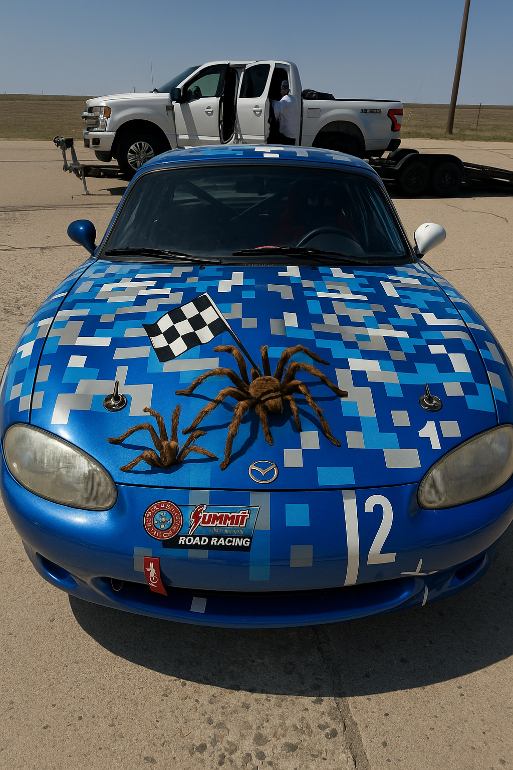 I'm guessing that my run group (with only five cars) will be combined with yours. Since LaJunta, there's a new windshield (cracked and pitted), new transponder (lost at St. Louis on the banked turns), reworked ballast, radiator baffles, and cool suit lines in the Z. How're you enjoying the Spec Miata? Next week I'll be testing a 2025 MX5 for Redline Magazine.