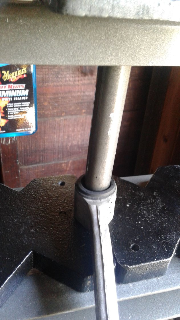 Anywho if you ever get around to changing your upper control arm bushings its a pain in the *** because the u shape and the metal race is on the pain in the *** side of the arm... Here is how I did it.