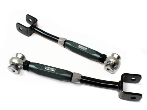 no mention of how much camber or toe they correct and they look just like the typical Megan garbage to me....hardly seems worth the effort, especially given their insane MSRP's also. They don't even have pics of the rear stuff, but based on the pic of the front, that is my guess
