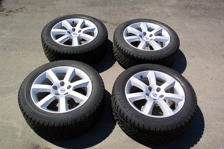 I traded in my 350z and now I have a set of Nissan OEM 350z 17" (imported from US) wheels with Dunlop SP Winter Sport M3 Winter tires on them. I had approx. 15,000 KM on those winter tires and it has almost 75% tread remaining. The Wheels has no scratches or marks on them.