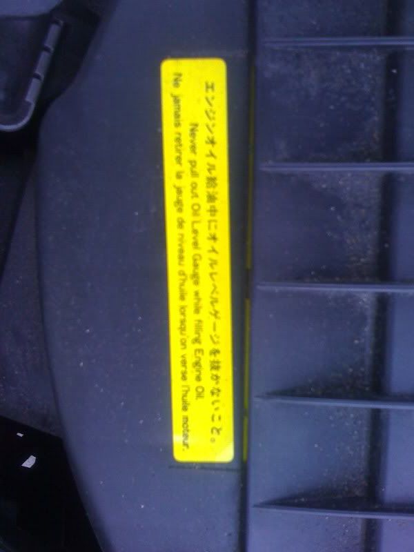 I have owned many different cars ...from imports to domestic ... But I have never seen this sticker on any of my cars ... Can someone explain me why I can't pull out the oil level gauge while filling up/topping off oil?
