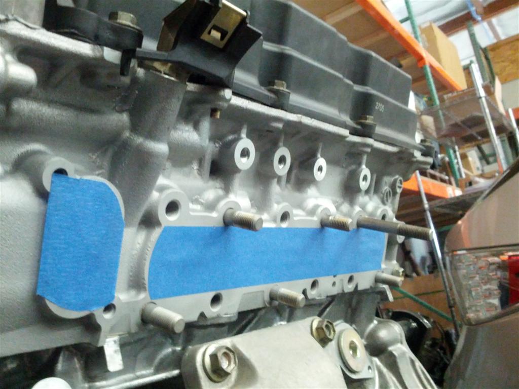 Has the HR headgaskets block notch and the HR head studs (2 dots)