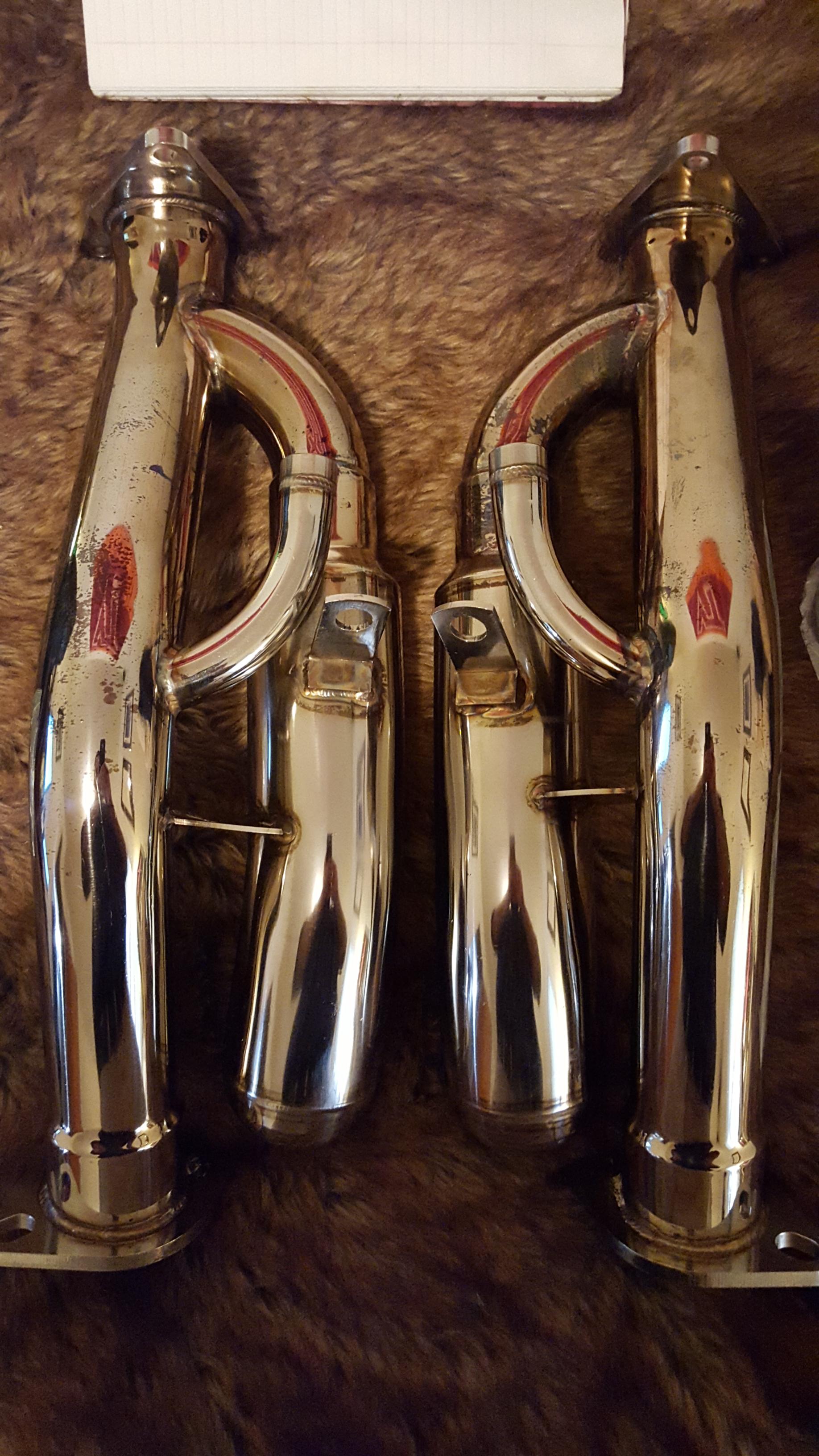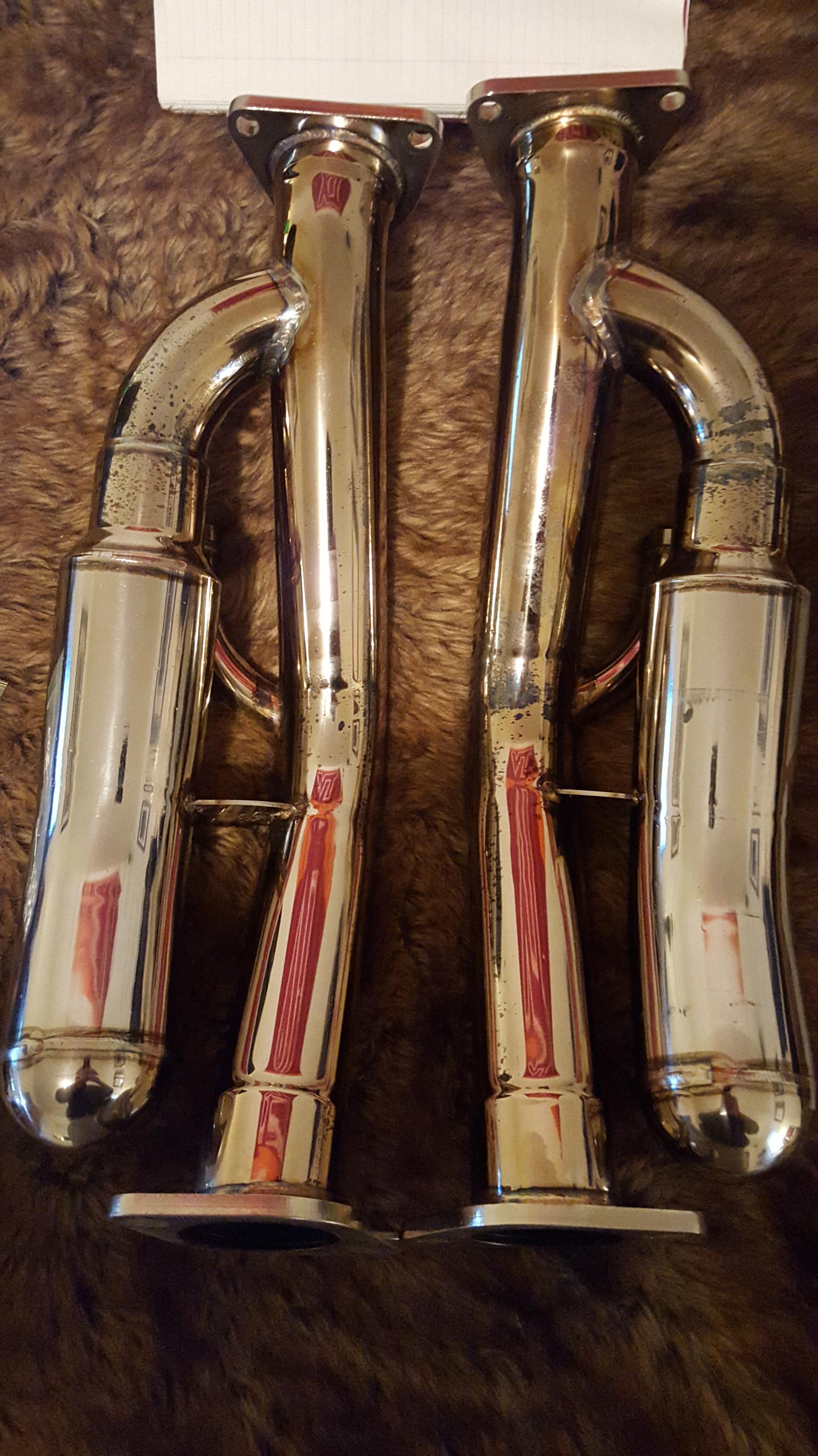 As the pictures show, they are in excellent condition with only some discoloration due to use. There are no cracks or bad welds, and I spent a few hours cleaning them with multiple coats of CLR, 3M rubbing compound, and Mothers polish. The bolts and extra unused lower gaskets are included, but the buyer will need to buy the upper cat/header gaskets.