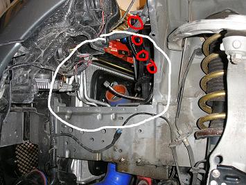 Here ya go . The red circles are the 4 bolts that needed to be removed . The white circle is where the blower drops down and comes out . You can get to the oil line and the return oil line from there easily .