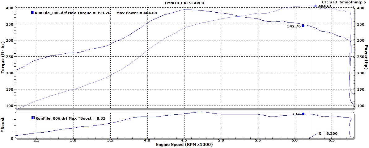 Thanks man, I would love to see that ride of yours!! After it was mentioned that my boost curve was "laggy" I started watching the points in which max boost was reached on the street. I was surprised to see max boost being reached at around 3500rpm. I don't know why the graph shows boost building slower on the dyno than on the street. I also asked for a conservative tune since this was the prototype DE kit for S&R. I've seen subsequent kits come out @ 7psi, that's why I was considering getting the EBC. I just don't want to risk bending a rod.