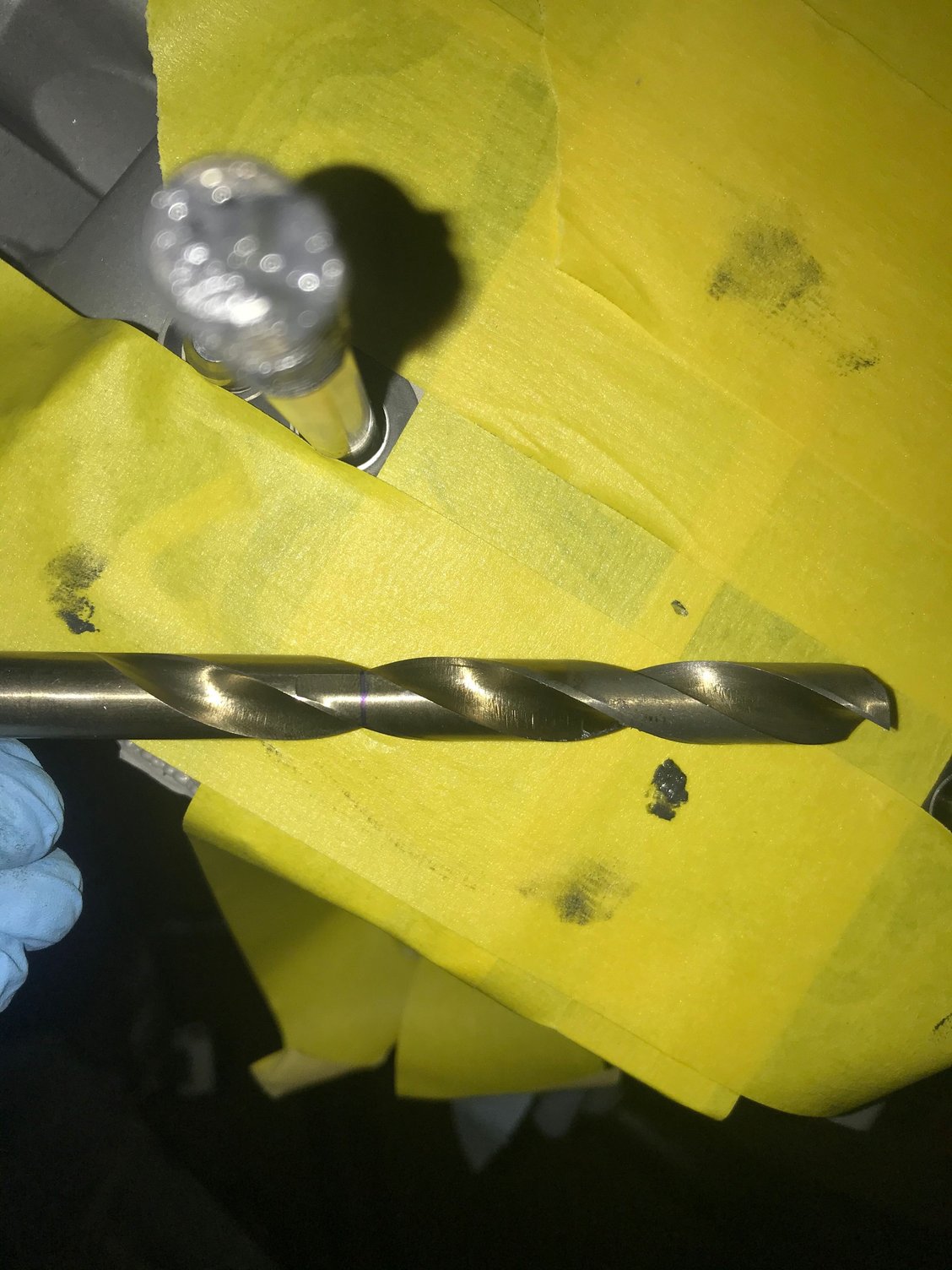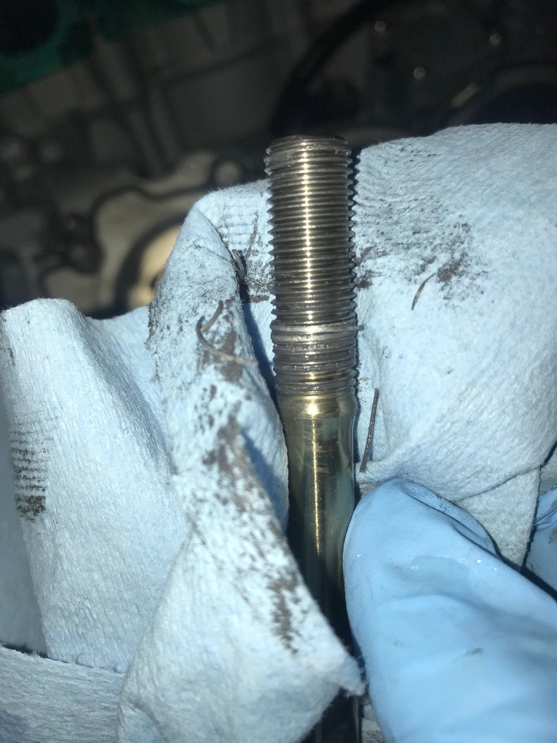 Just placed the GTR bolt in the hole for initial size comparison Marked the drill depth on the bit Cut out the old damaged threads Transferred the depth mark onto the tap Ran the tap down into the bolt hole