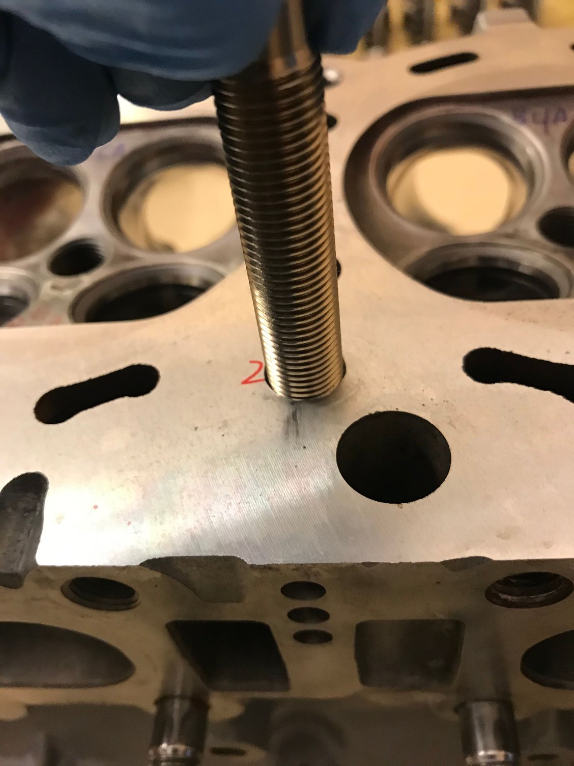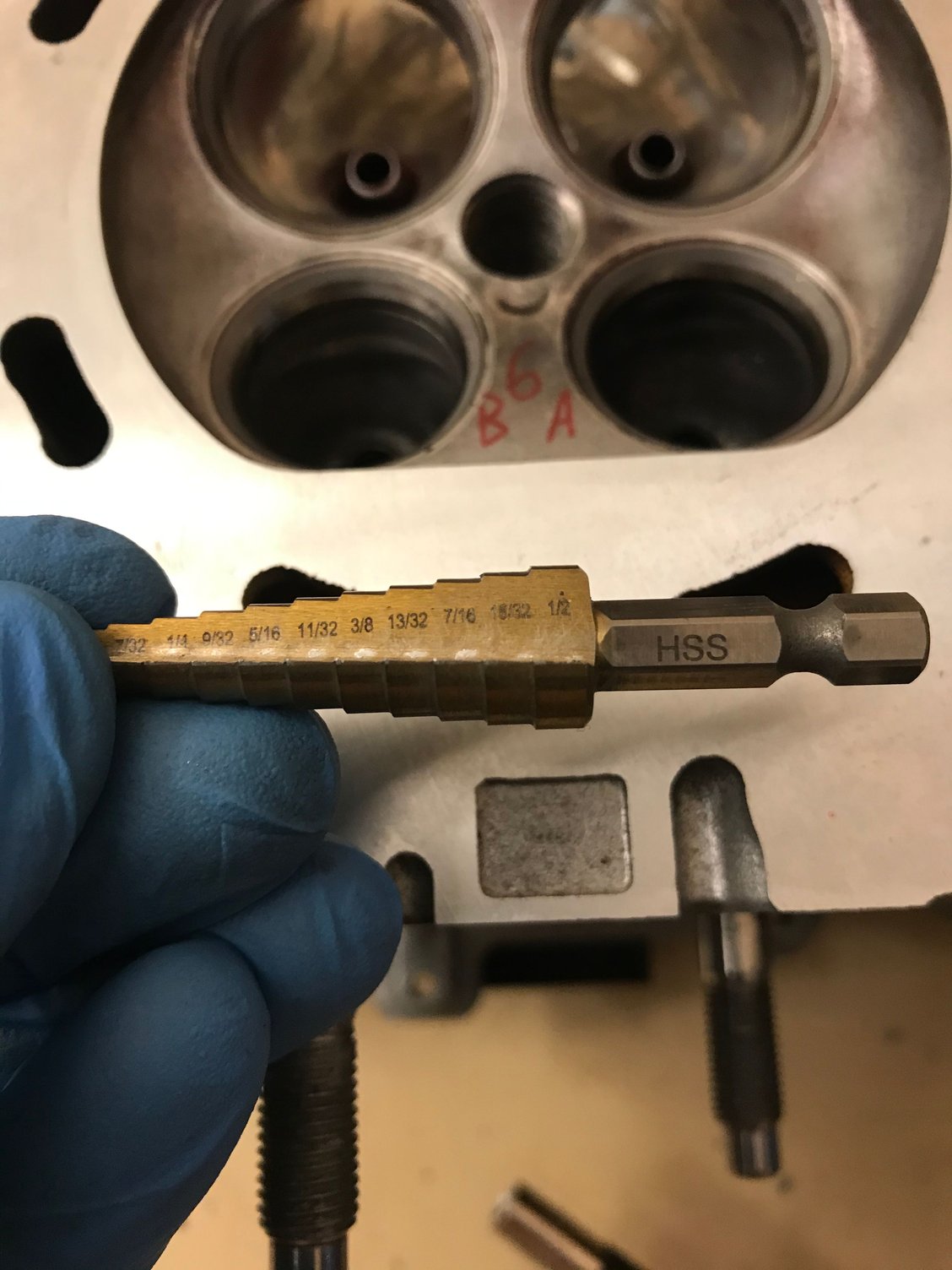 drilled out all the old threads from the stud holes and managed to drill deep enough to set the studs away from any valvetrain interference
