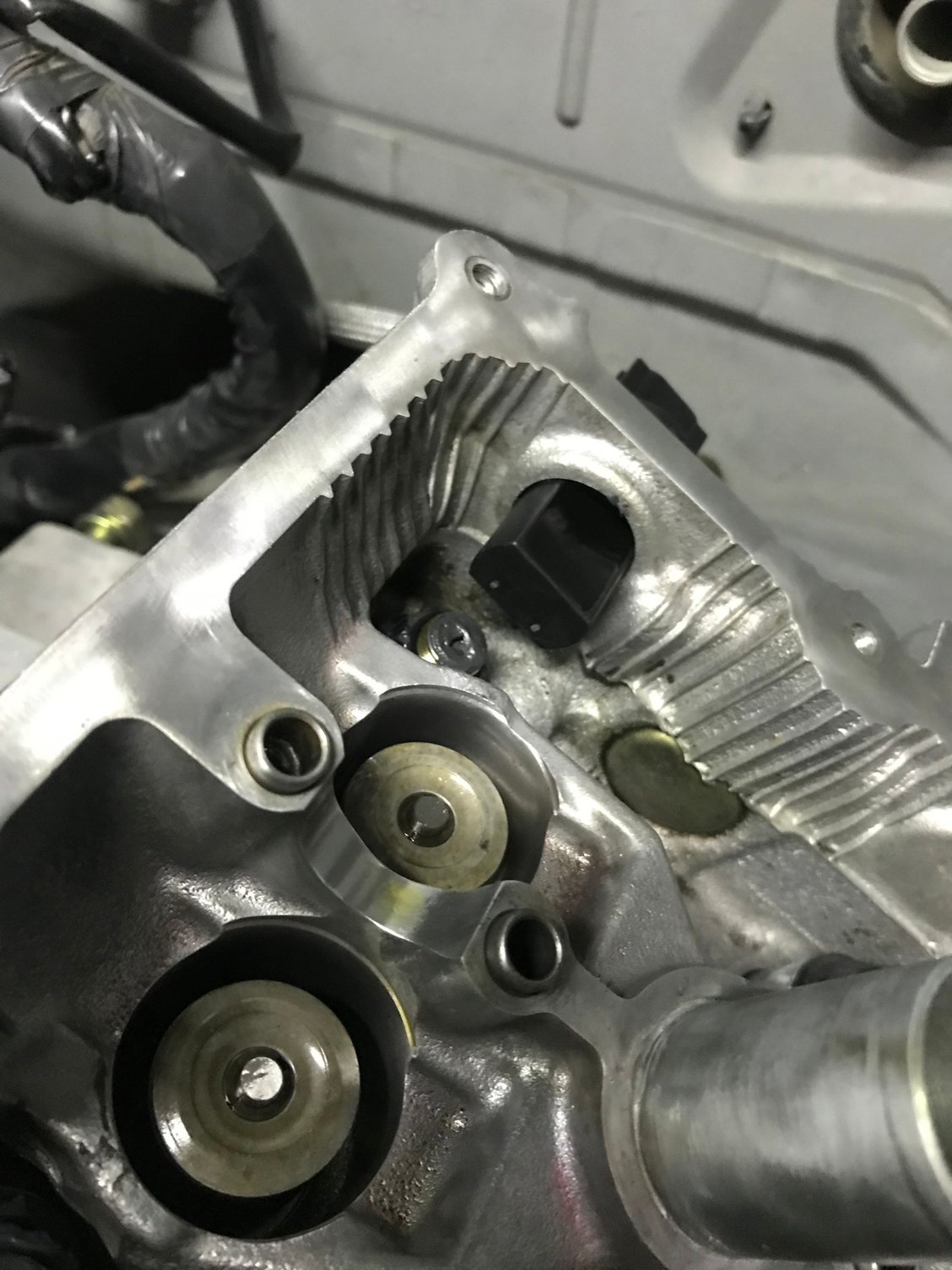 Well the heads did not go on today, ran into an unforeseen snag with the cam sensors. As you can see from the photo below the cam sensor is very close if not interfering with the stud. Action plan now it to figure out if I have another 2-3mm of depth I can drop the stud and if the stud that close to the sensor will cause the sensor to misread. I’ll keep you guys posted
