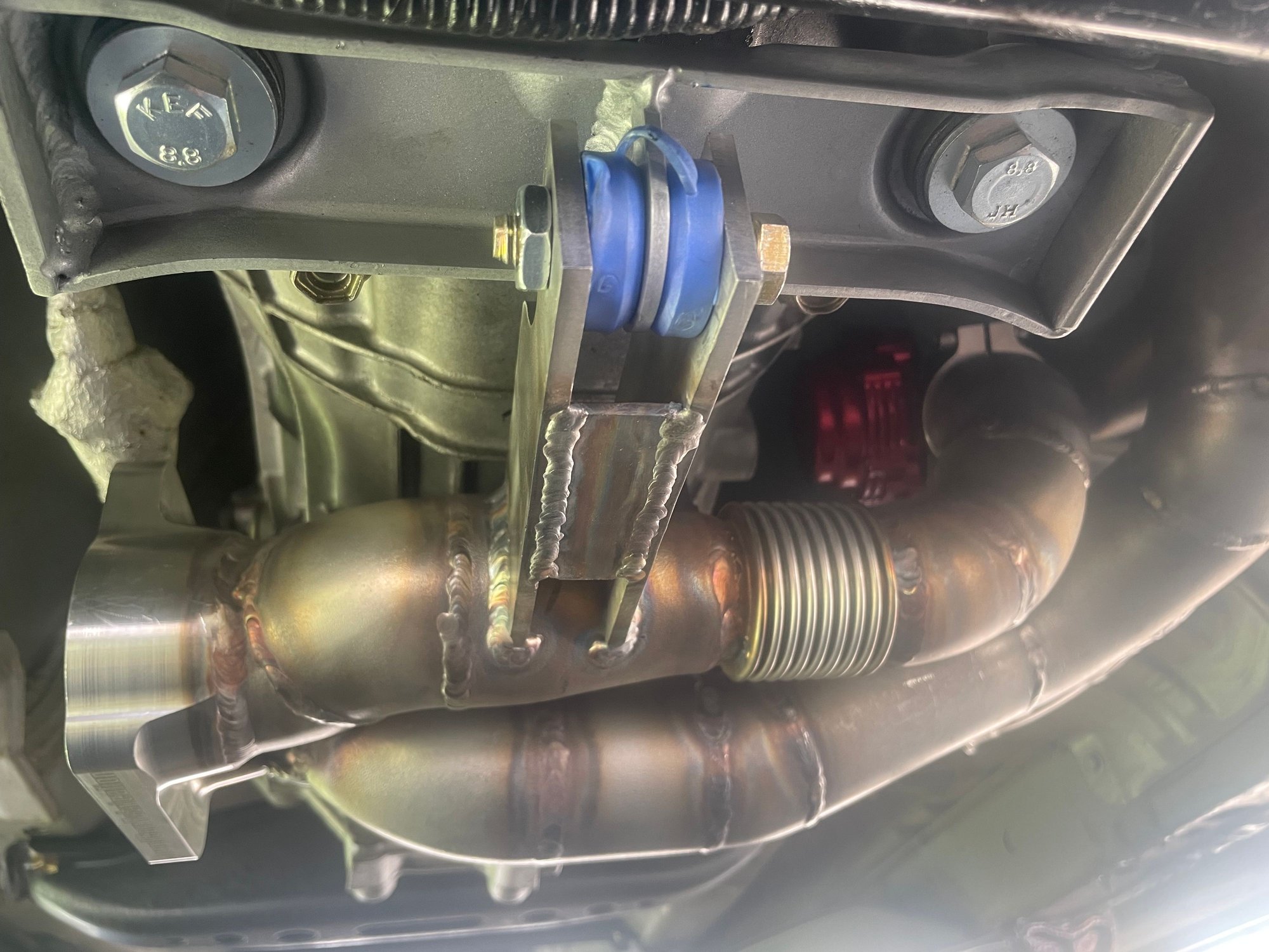 Manifold mount test fit, I’m going to cutout a hole in the bracket and weld in a cooling channel to keep the bushing from melting it will run like the water cooling for the wastegates