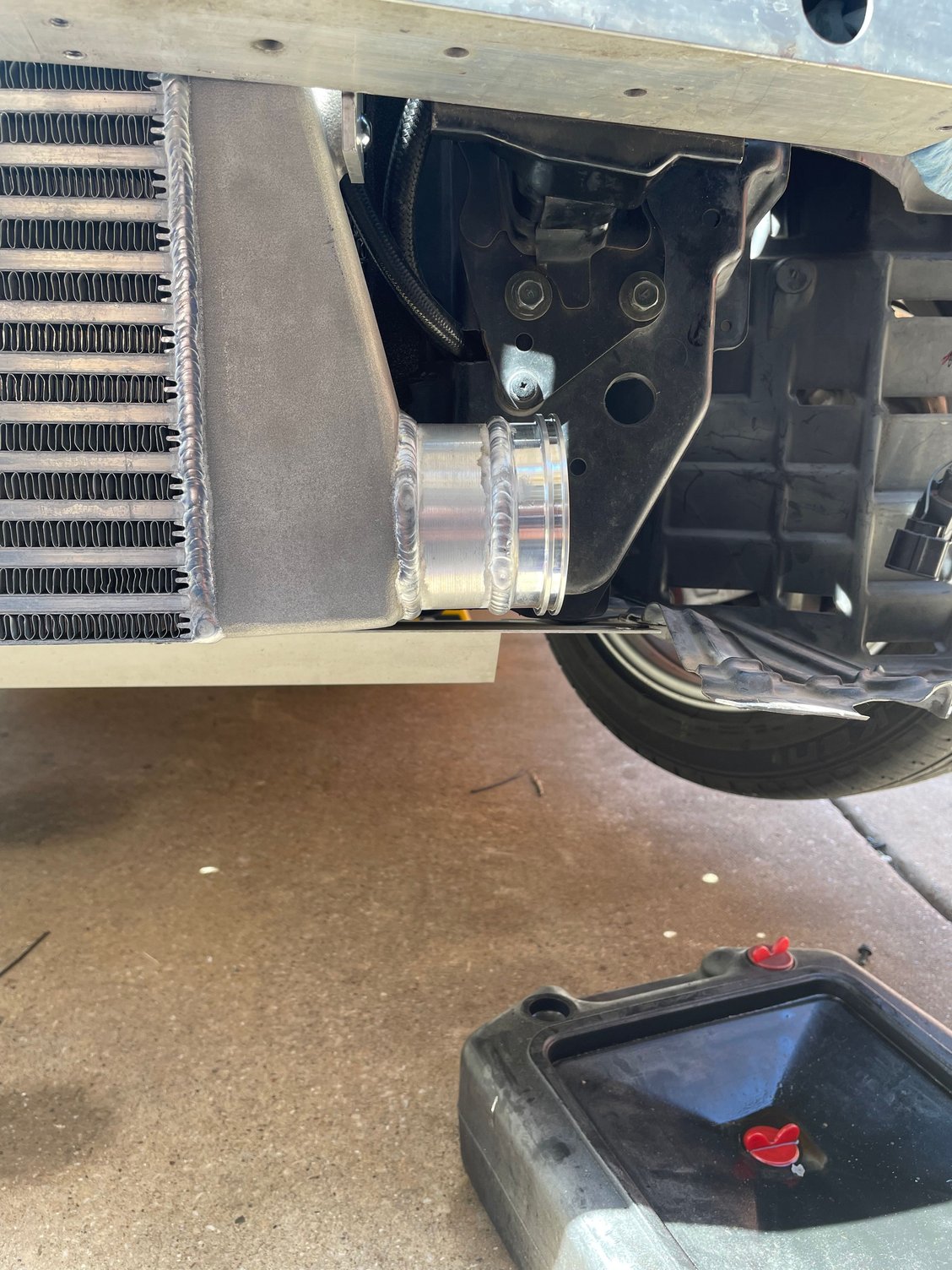 Finally broke open the intercooler which was actually the first par I purchased for this project back in 2017 and have been sitting on it ever since, it’s huge, it has a diverter in the end tanks to spread the flow over the whole intercooler and barely fits under the crash bar but I plan to modify the crash bar to suit my needs