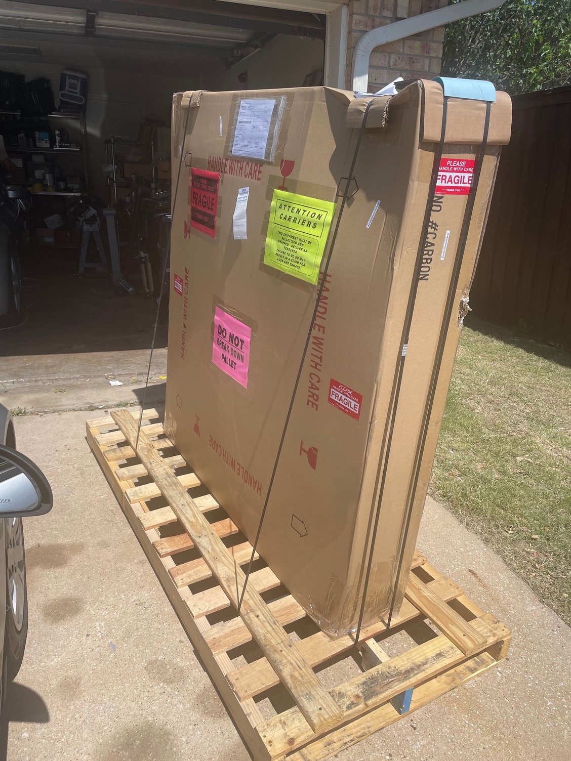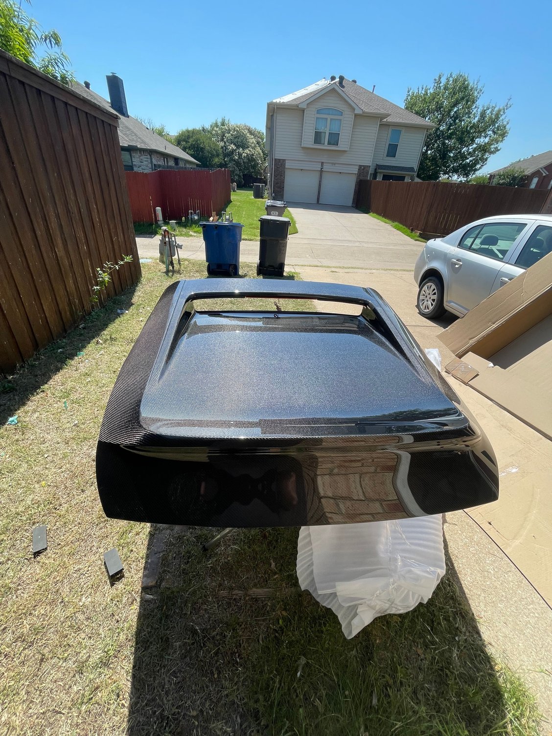 now here is how I’m moving forward, I already had a spare HR hood in the garage so that’s taken care of, the doors and quarters aren’t too bad, the PDR guy at work has offered to push the dents on those. The fenders are cheap enough that I’m just going to replace them. the roof, a pillars and hatch are really to badly damaged to restore and paint has cracked and chipped. For the roof I’m going to push the dents the best I can and it will get an overlay, in fact I’m going back with carbon fiber parts and overlays for a good bit of it. A pillars and hatch are getting replaced with full on carbon fiber parts, mirrors and roof get overlays and I’ll probably do an overlay for the B pillars just to match but I’m undecided still. I have however decided to repaint the car, probably looking at a complete color change, something in the red-black spectrum with all the carbon fiber getting a red candy clear. I placed the order for all the parts back at the beginning of June and some of the parts being made to order and 20 business days out from order date should be arriving early to mid July, the carbon fiber hatch however came today, and in case you were wondering no I didn’t order a regular hatch, I got the AMS GT style tunnel hatch from VIS racing and it’s beautiful! I haven’t gotten it fully installed yet because the heat index for today was 114 so I just got it in place without the seals, latch, or shocks
