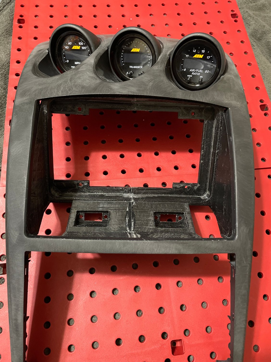I have the trim rings for the center console gauges removed since I’m needed to sand down the textured plastic before painting it but I have a gallon of the oem paint to play with.