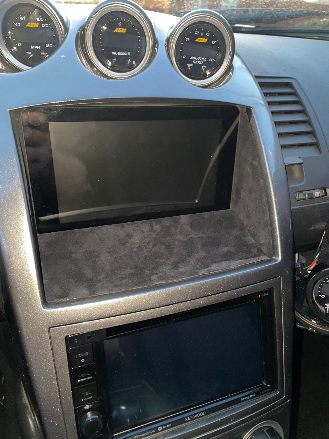 This it the digital dash setup with the Aem gauges, I painted the center dash to match the exterior and suede wrapped the plastic surround for the display