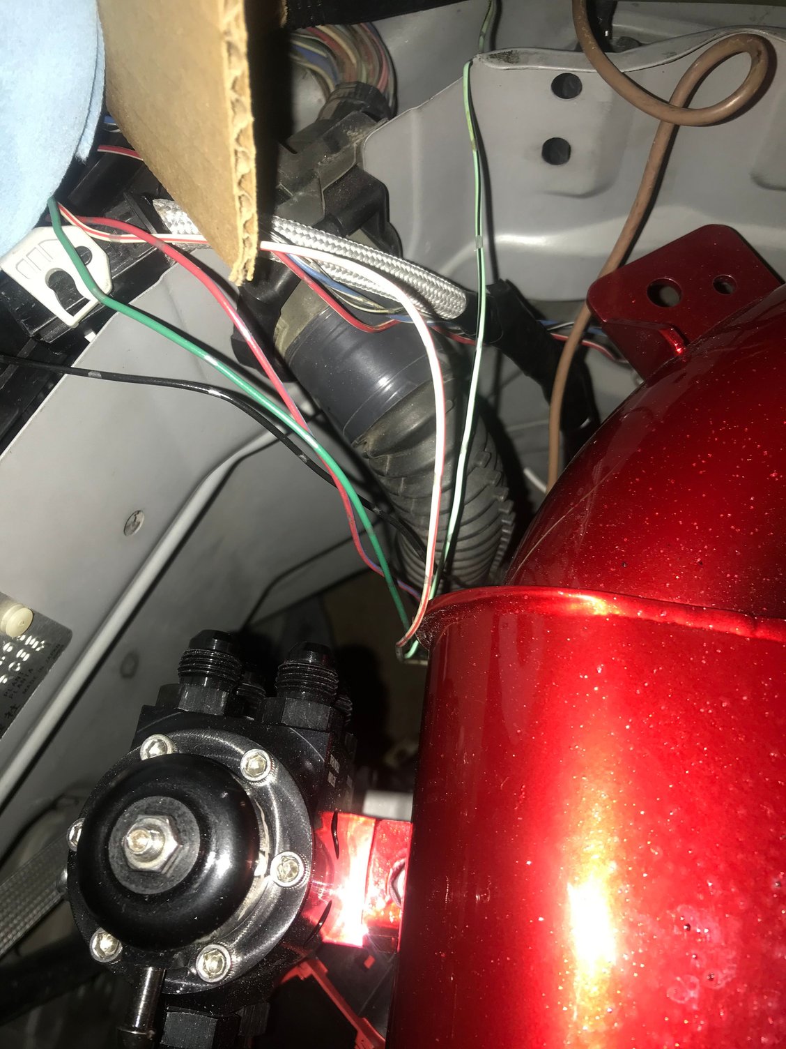 Well it’s been a nasty nasty week for cars and things, where to start? I Guess chronologically. Well I ruined one of the -20 weld bungs on the radiator and the fitting along with it. Some how it gulled the threads for the upper hose and couldn’t get it fully tight or off without damage 😢 the murano thermostat I adapted for an line interferes with some of the other components that won’t be in place when the turbo is installed, this was an oversight on my part so I decided for the time being I would take a step back and wait and do the AN hose setup later. Unfortunately I already cut the oem coolant tube and welded an -20 bung to it so I had to order an adapter to use regular line. Ultimately not the worst of what was to come. I’ve been trying to get everything in place to do the initial startup and low and behold one of my brand new fuel filters was leaking from the filter body and sprayed fuel all over the bottom of the little glove compartment cavity, I ended up having to order a new one as the window to return the filter had passed. The new filter came in Tuesday and I got it installed leak tested all the fuel lines and set the fuel pressure to 53psi. Then comes Thursday, I will forever remember the Thursday that F****d me. first off for those that don’t know I live in Texas, Texas right now if going through a very rare cold front this week. We’re getting lots of freezing rain. Now that might be normal for some of you but in Texas they don’t have the resources to salt and plow the roads. Yesterday there was a 130+ car accident just a few city’s over from me and countless around me. In fact I managed to be one of them and just so happened to total my other Z 😭 and yes my silver z and black z are the only cars I have available to drive so I don’t want to hear that I should have driven a different car cause I don’t have one