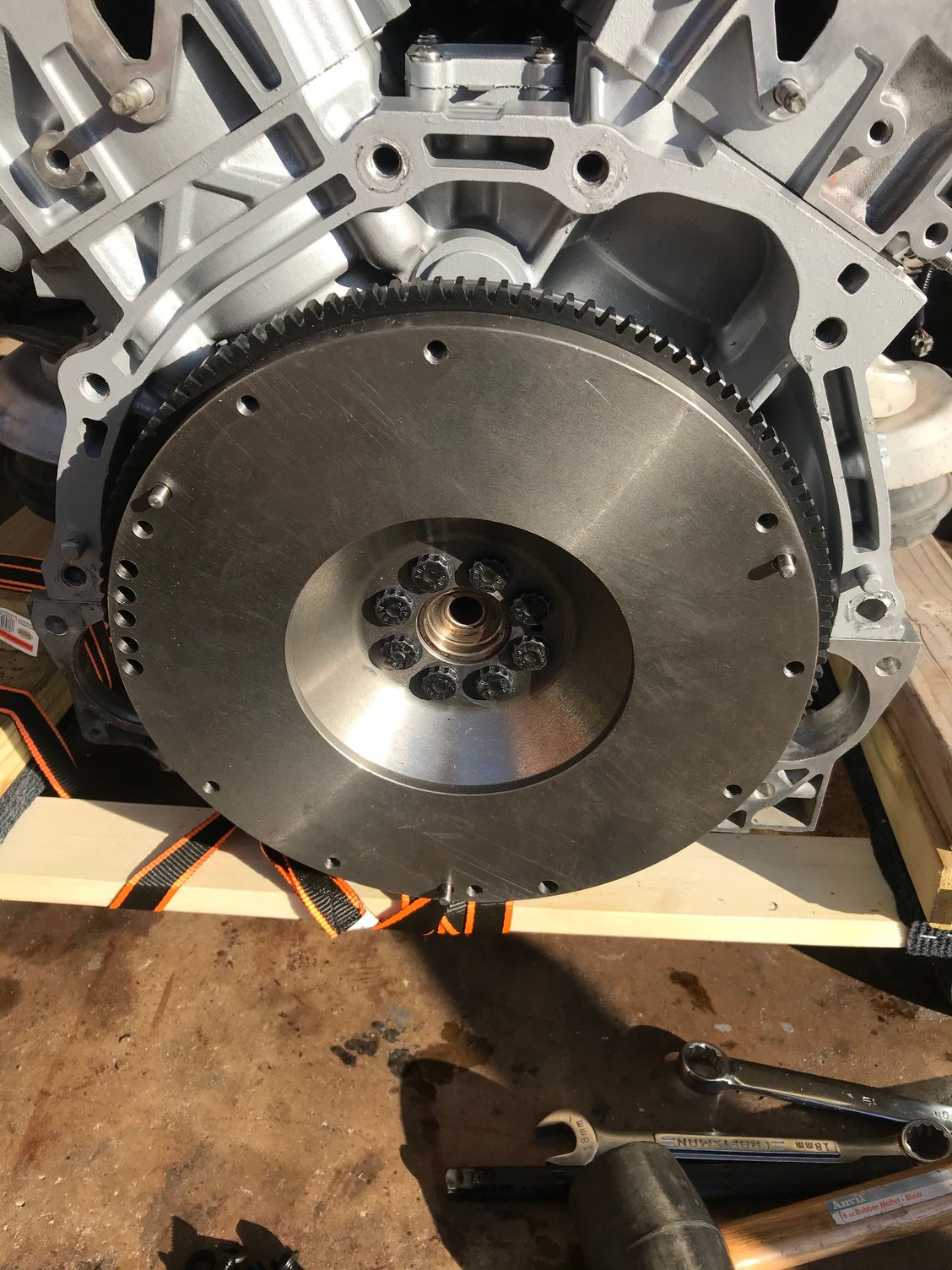 ARP exhaust studs Original clutch left quite a nasty mess in the bell housing My crank was originally from an auto and they have little adapters in them that you have to remove in order to install the pilot bushing used for the manual JWT clutch Cleaned out the bell housing replaced pivot ball and baring and greased with high temp grease JWT flywheel with ARP flywheel bolts JWT clutch fully assembled with ARP pressure plate bolts And she is in and mated to the trans