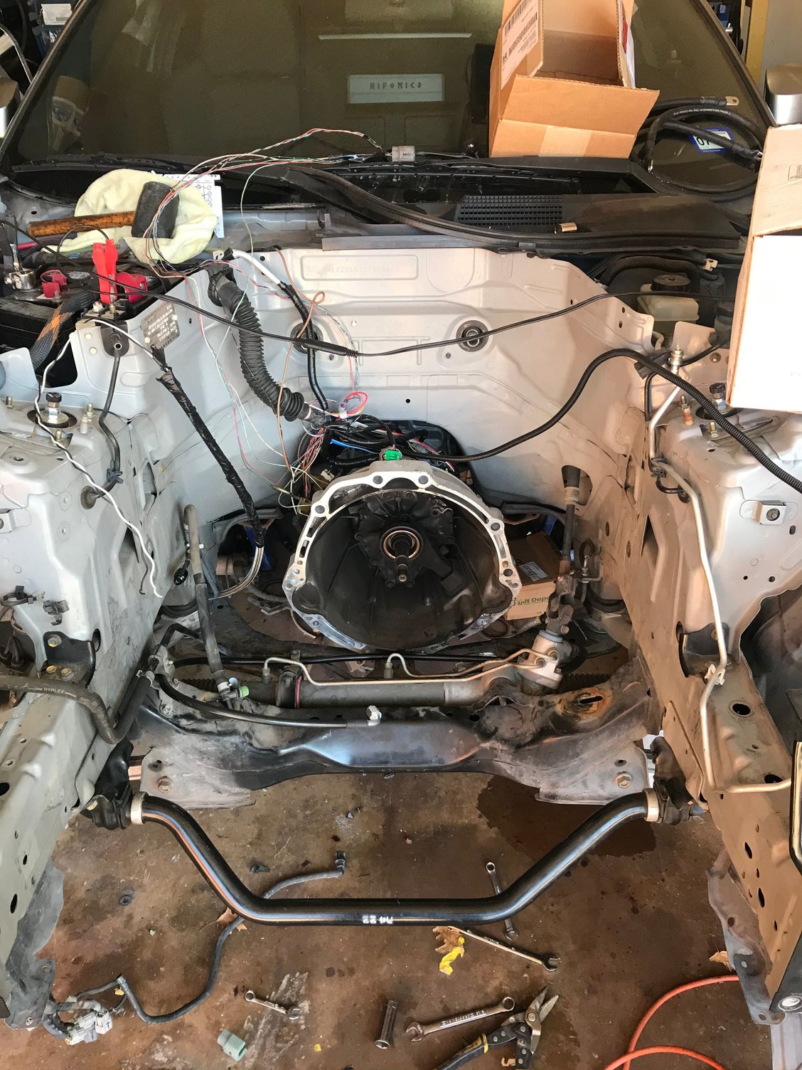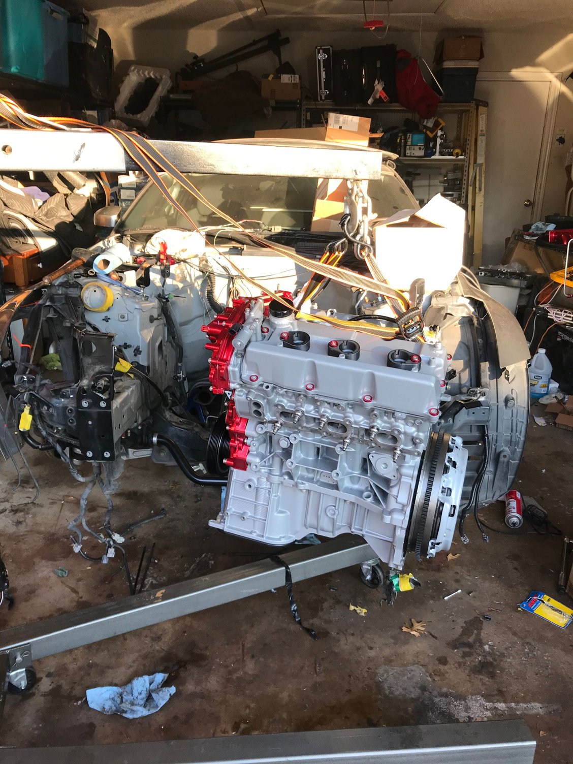 managed to get the engine in the car with the new JWT clutch and flywheel, decided to swap the oem exhaust hardware for ARP studs and did a bit of electrical work