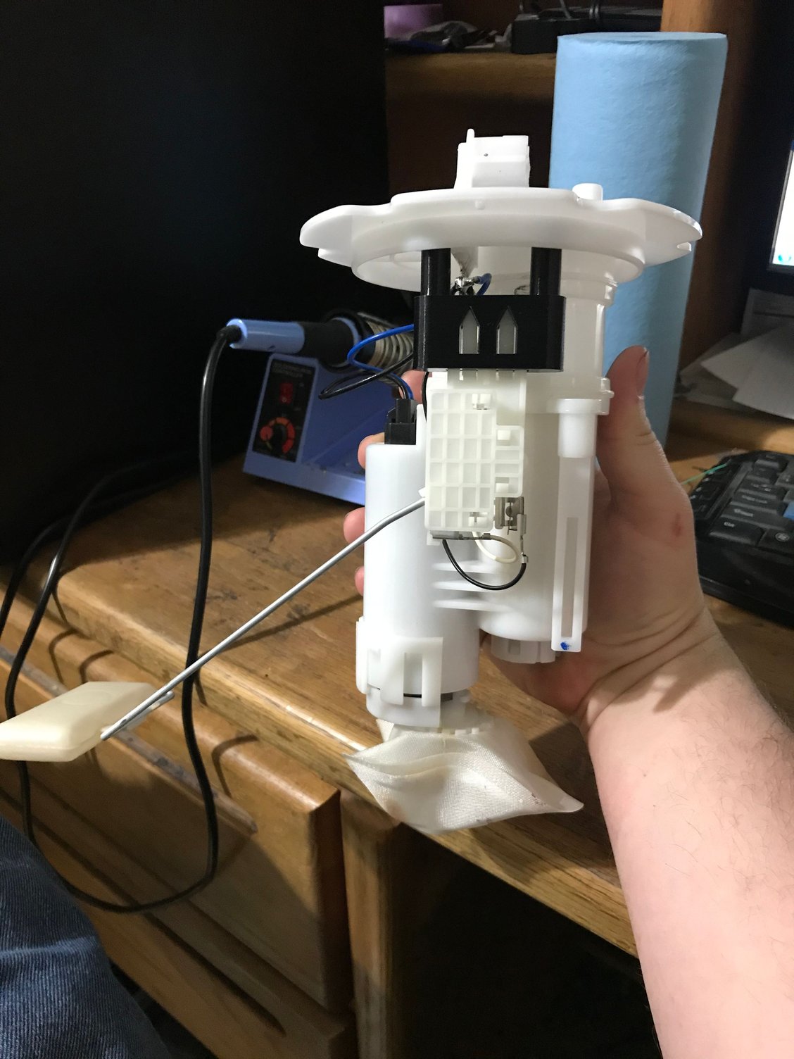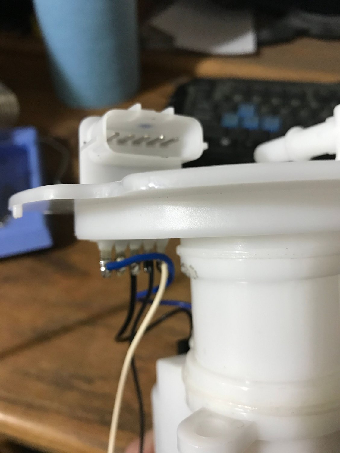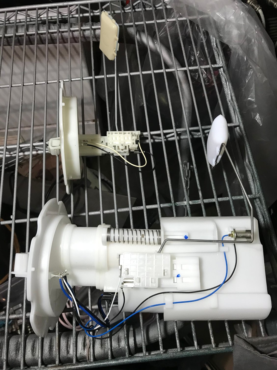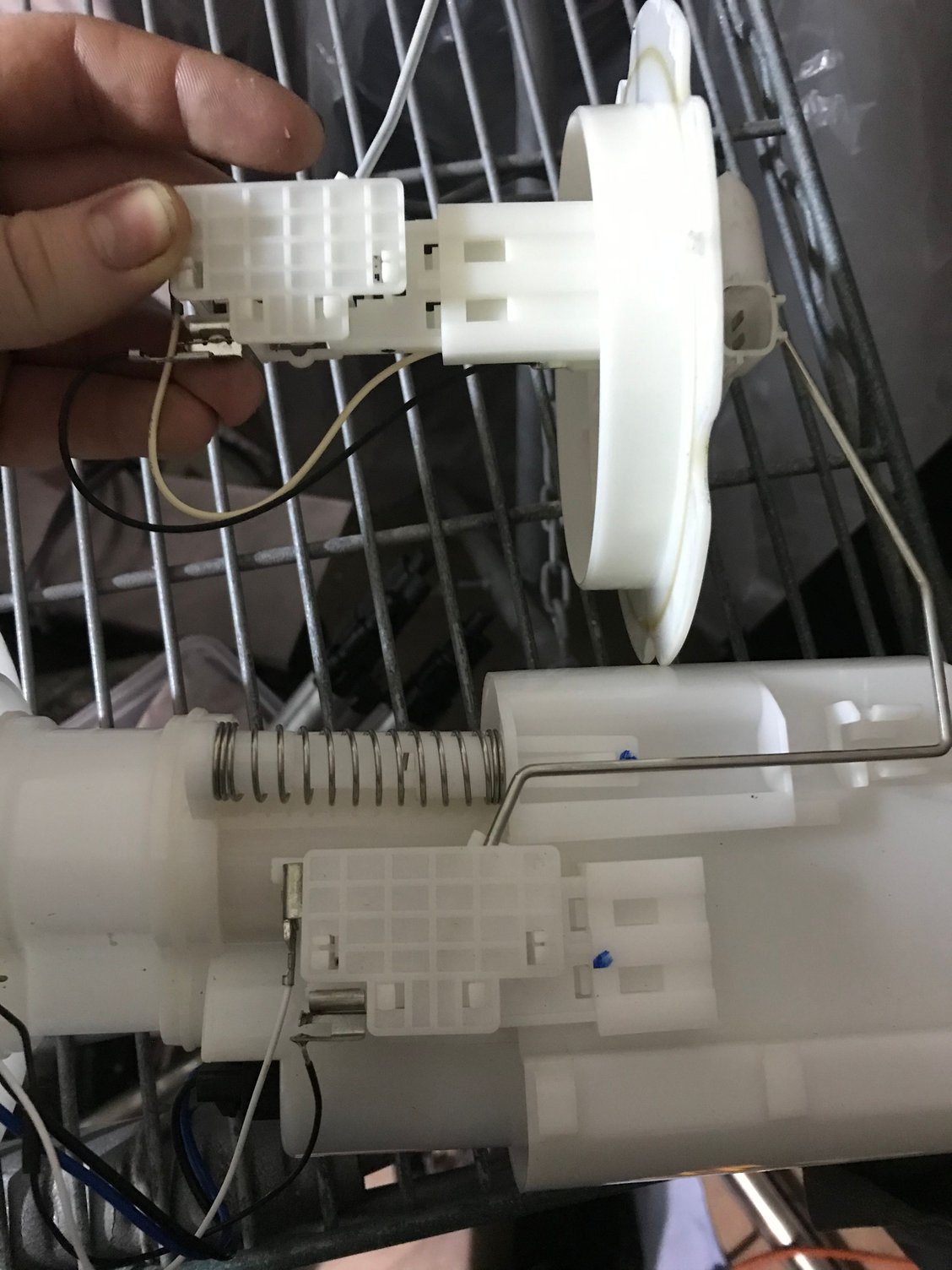 On another note let’s take a step back to the fuel system, after thinking about it I realized the way I have it setup free flowing from the in tank pump through the surge tank with little or no restrictions I think the flow is going to be enough for the siphon nozzle to be a point of restriction causing pressure buildup in the surge tank. I could probably try drilling out the nozzle a few times and play with it but I decided to nip the potential problem in the but now instead of playing with a system full of fuel several times. So I started looking at other solutions but I really couldn’t find much except zip-tieing an additional pump the the drivers side fuel level sender and I really didn’t like that as a long term solution. So I purchased another fuel canister and started working towards dual feed and return to the surge tank and ditching the siphon tube all together and that means adapting the fuel level sender to fit a fuel canister as the drivers side level sender doesn’t share the same resistance curve Removed the fuel level sender Side by side comparison of the two units Passenger side maximum resistance Passenger side maximum resistance Breakdown of sending unit Testing figment of canister in tank