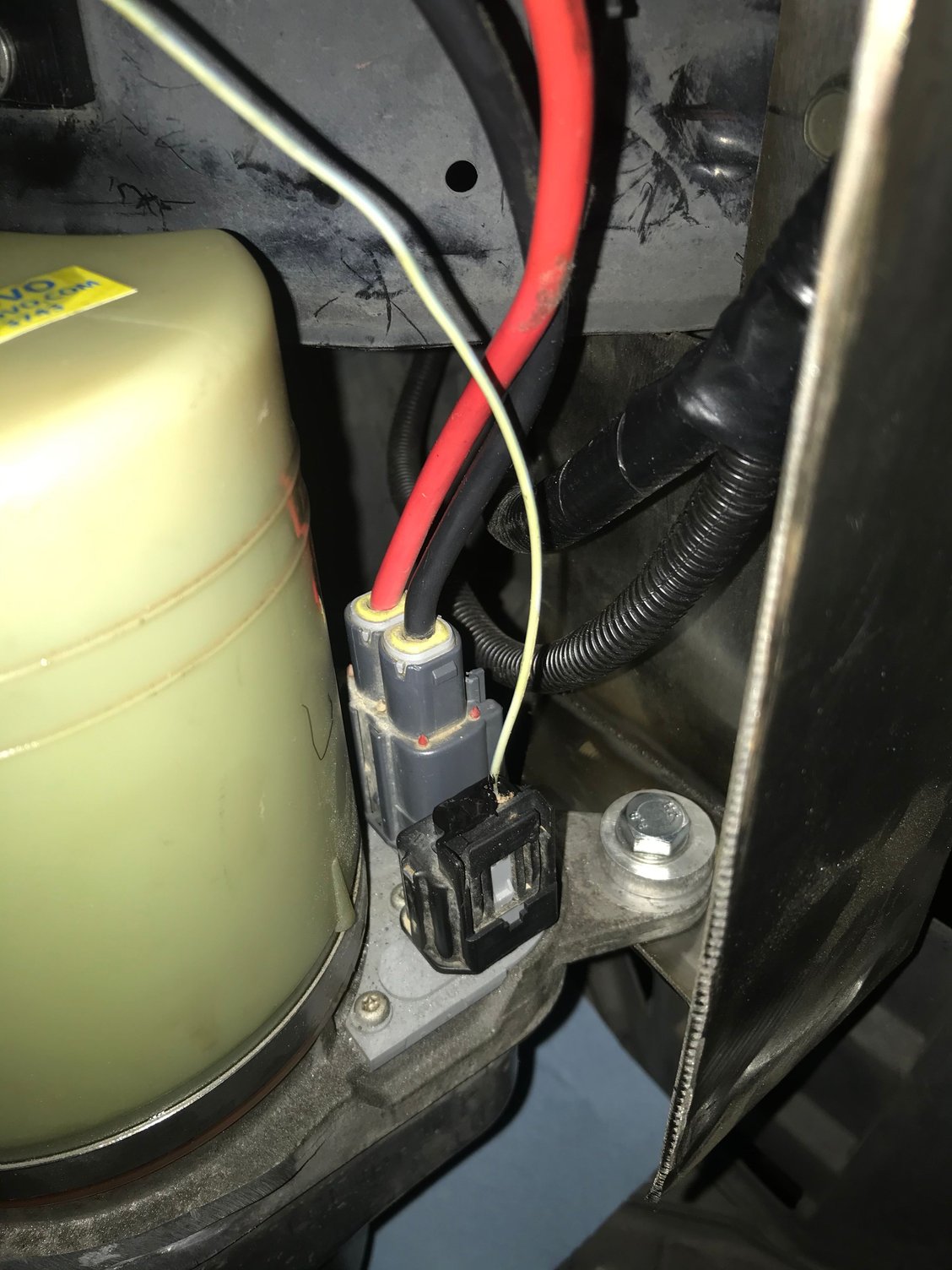 Pre weekend update, not much to say for progress this week, mostly been putting things back together but I wanted to make this post to share the info and progress on the Volvo electric power steering conversion. The pump is in and working wiring was pretty straight forward, it’s just 3 wires constant power +/- with a 40A fuse (will probably swap this out for a 40A circuit breaker in the future) and then the trigger wire 12v. There is about a 5 second delay between power being applied to the trigger wire and actual pump power up. This will keep the pump from trying to power on while cranking, as for sound it’s actually pretty quiet in fact it’s quieter than my holly dominator fuel pump and the exa-pump. As it stands I’m not seeing any compatibility issues with the pump and the oem steering rack, I am using the oem recommended power steering fluid for the 350z. As for parts I used an upgraded 350z power steering hose with -6AN hose ends and fittings, I decided to run aluminum hardline from the outlet of the steering rack past the drivers side header and then switched to soft line returning to the pump as the pump and reservoir are integrated. The pump itself hose the same thread and pitch for the hose attachment as the oem 350z pump so the fittings I received with the -6AN hose was compatible with the Volvo pump. I did have to cut down the bracket at the rear later as it had the pump to far forward and the pump was interfering with the bumper Power ground and trigger, the trigger wire is the wire closest to the corner of the pump, normally there are 2 additional wires for Volvo’s CAN bus but they are not needed for standalone oppression so they were removed and sealed. I added some heat protectant sleeving for the braided hose since it runs right past the header as well I ended up printing a new bumper retainer bracket to allow more room for the fill cap, needless to say I have to remove the bumper to service the power steering. That’s not a problem for me as I wanted it out of sight out of mind