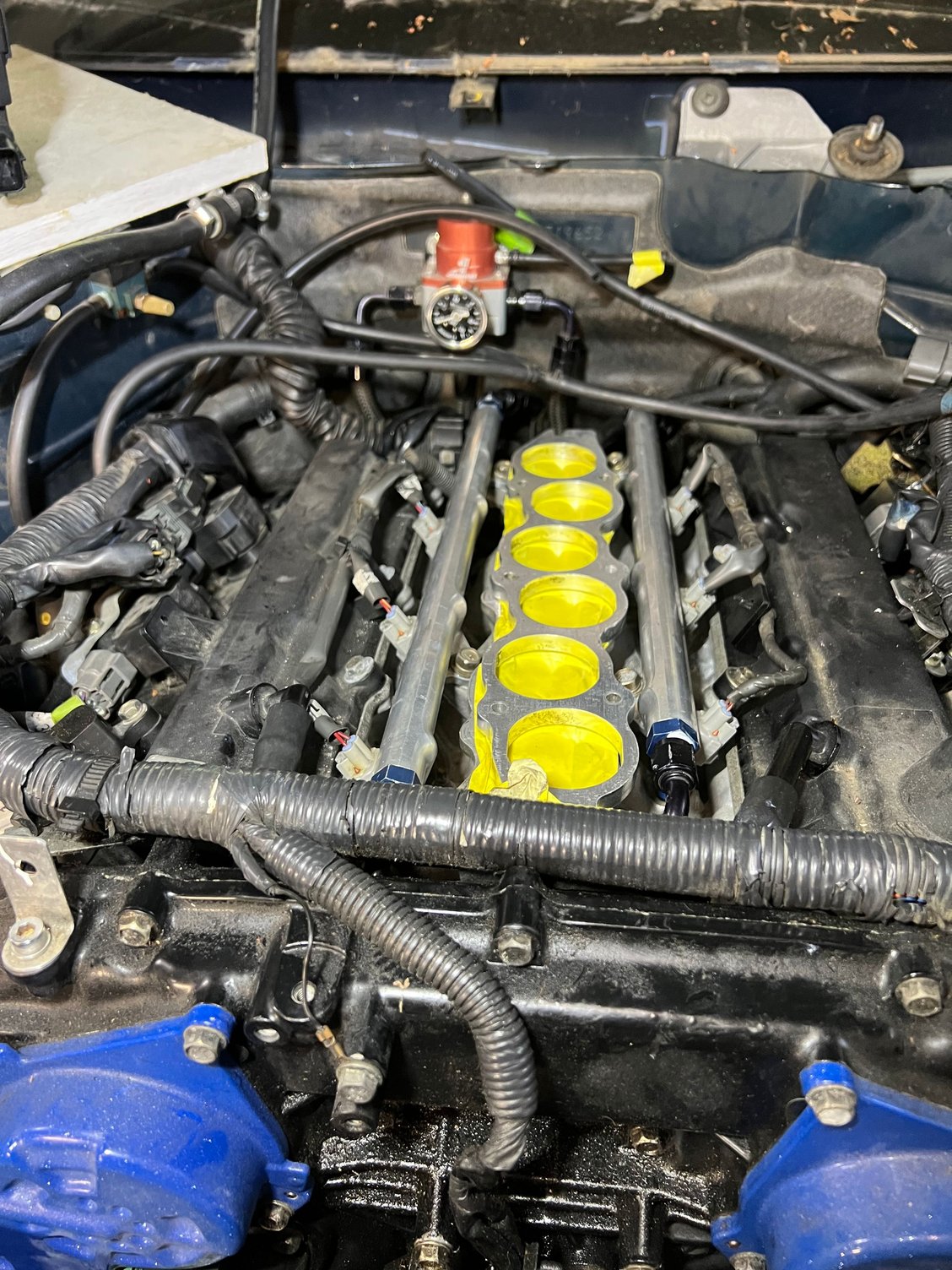 Whew......getting RTV on both sides of 2 metal intake runner gaskets AND spacer to clear fuel rail AND the bottom of the plenum AND the top of the intake runner.