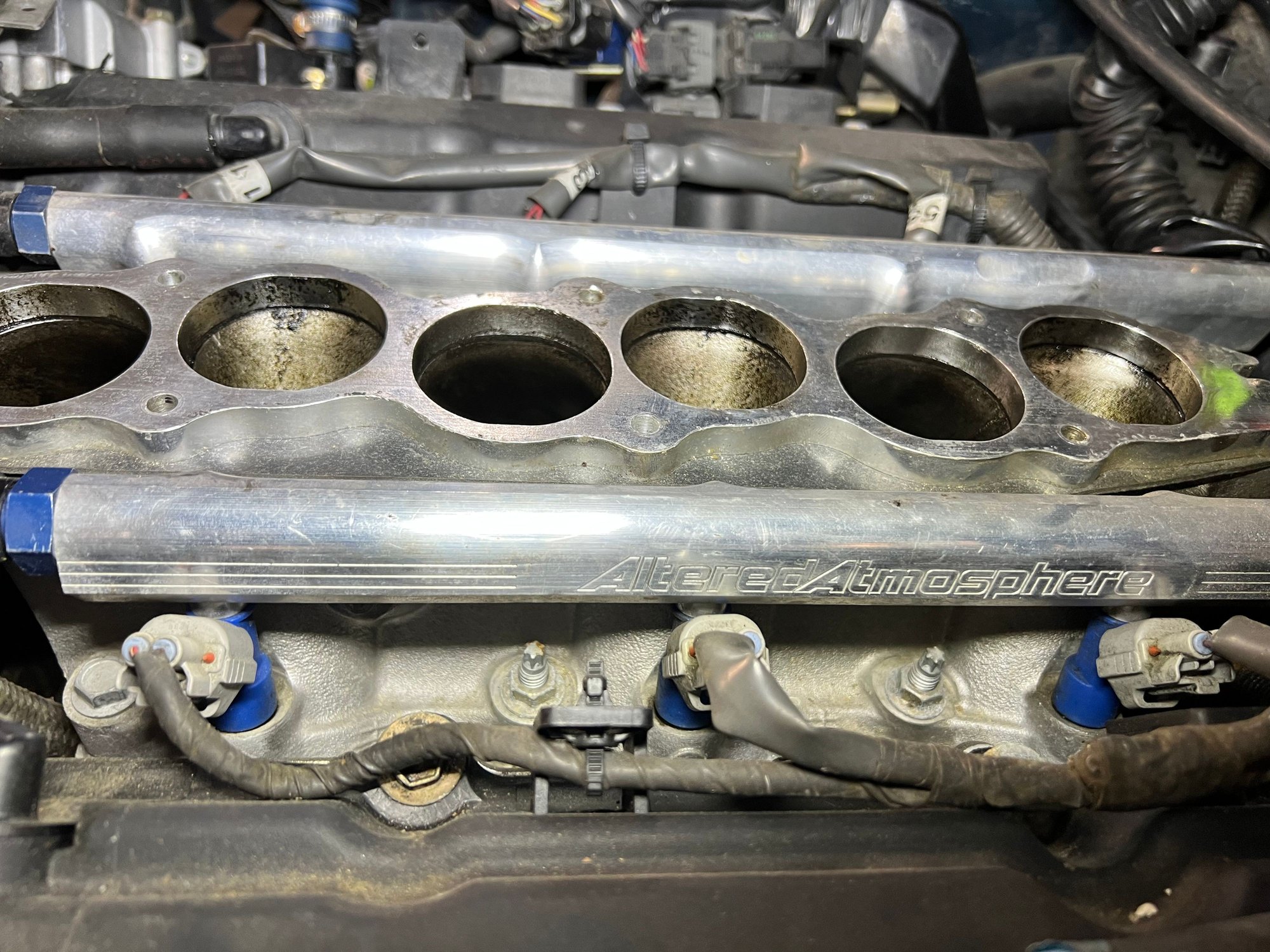 Took plenum off and noticed a gasket in between spacer and block. Now I'm concerned there could be a leak in gasket. It's on there VERY well. Was thinking of trying to saturate gasket with acetone in attempt to remove. Thinking I might throw plugs, clean injectors, and maybe OEM coilpacks before tearing up gasket and perhaps spacer.