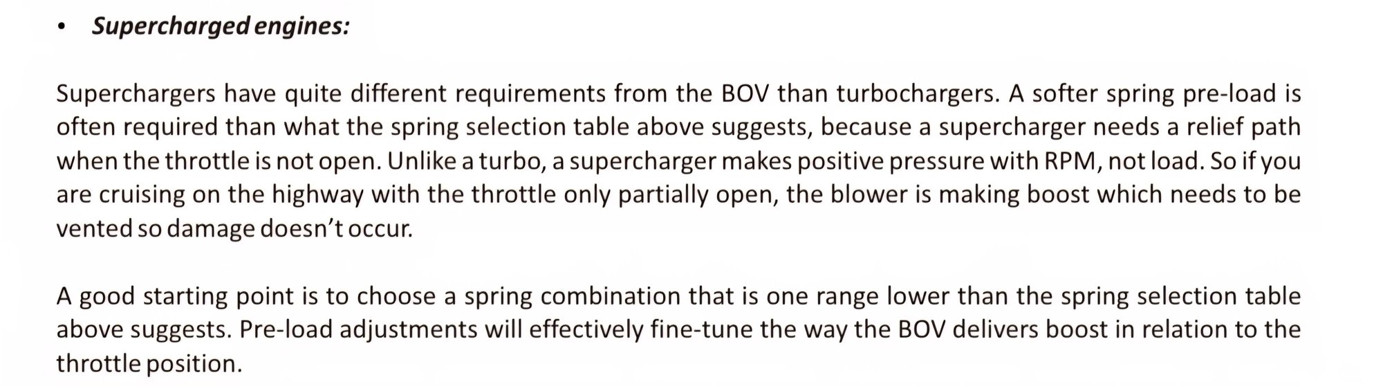 Taking our opinions out of the equation, if Turbosmart and GFB are stating different requirements AND sell supercharger specific valves, I must think it is for a reason, so that's what I will run as I'm a strict person when it comes to drivability.