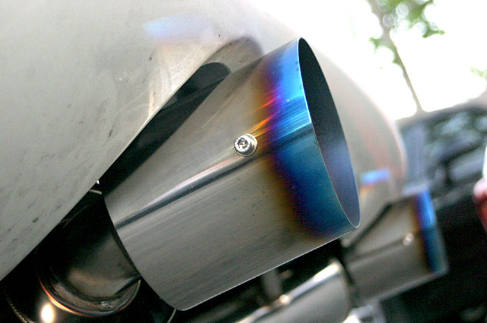 The Titanium tips are adjustable. Meaning there are two Allen bolts on each side which allows users to adjust the length of where the tips sit in relation to the rear bumper thus allowing a greater amount of adjustability for proper clearance of aero modifications.