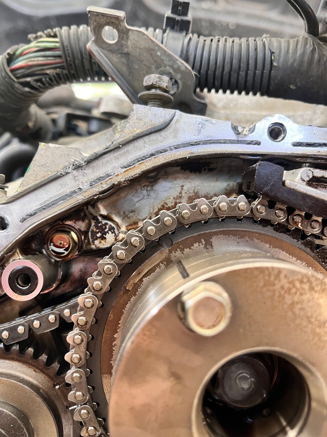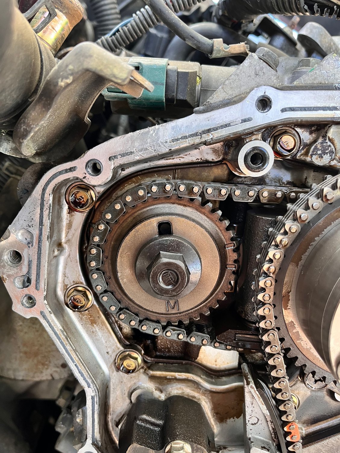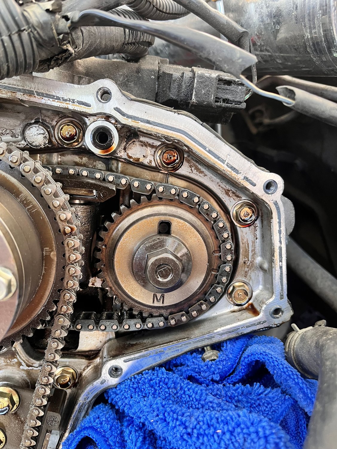 Hello i have a 165k miles de 350z Im doing the gallery gaskets, the secondary timing chain marks won't line up I did spin the engine multiple times counterclockwise when trying to line up before, but only in small increments. I'm worried one of them may have jumped timing. If that's the case, can anyone verify. When i line up the right side secondary mark everything is cleaner and very clear like in the photos but when i line up the left side secondary since only one or the other line up not both its not dead lined up as to say.