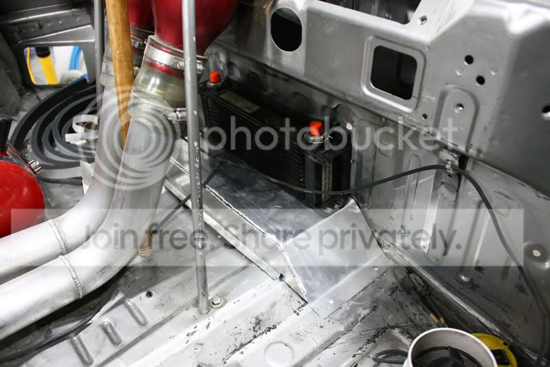 I live in California so a temperature switch is not needed. This is also a deticated track car. We run 30 minute sessioins also. I had a Borla Exhaust and plan to cut out the the rear canister. I plan to build a frame to mount the heat exchanger, pump, oil filter and monitor. This will then be hung from the mounting points the heat shield was mounted under the tire caring area.
