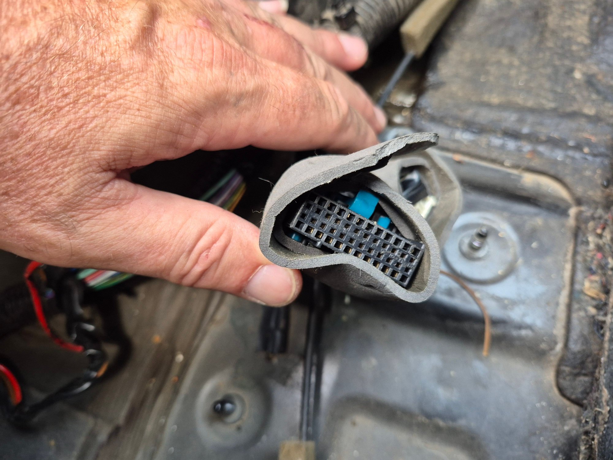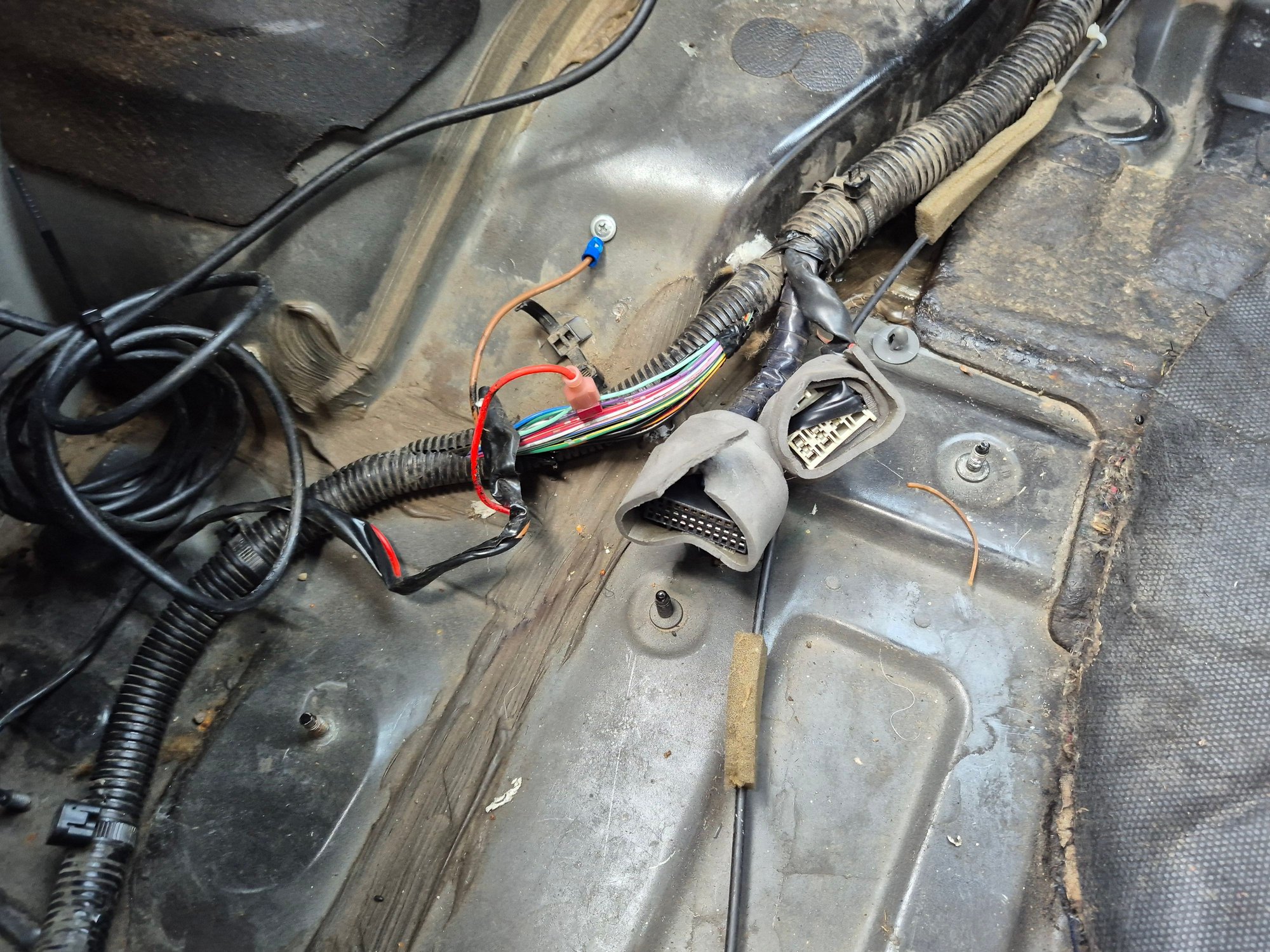 Good progress so far. The trunk harness connections are from the factory Bose audio system. You can safely leave those alone, most people remove the Bose system as they are not economical to maintain once components start failing.