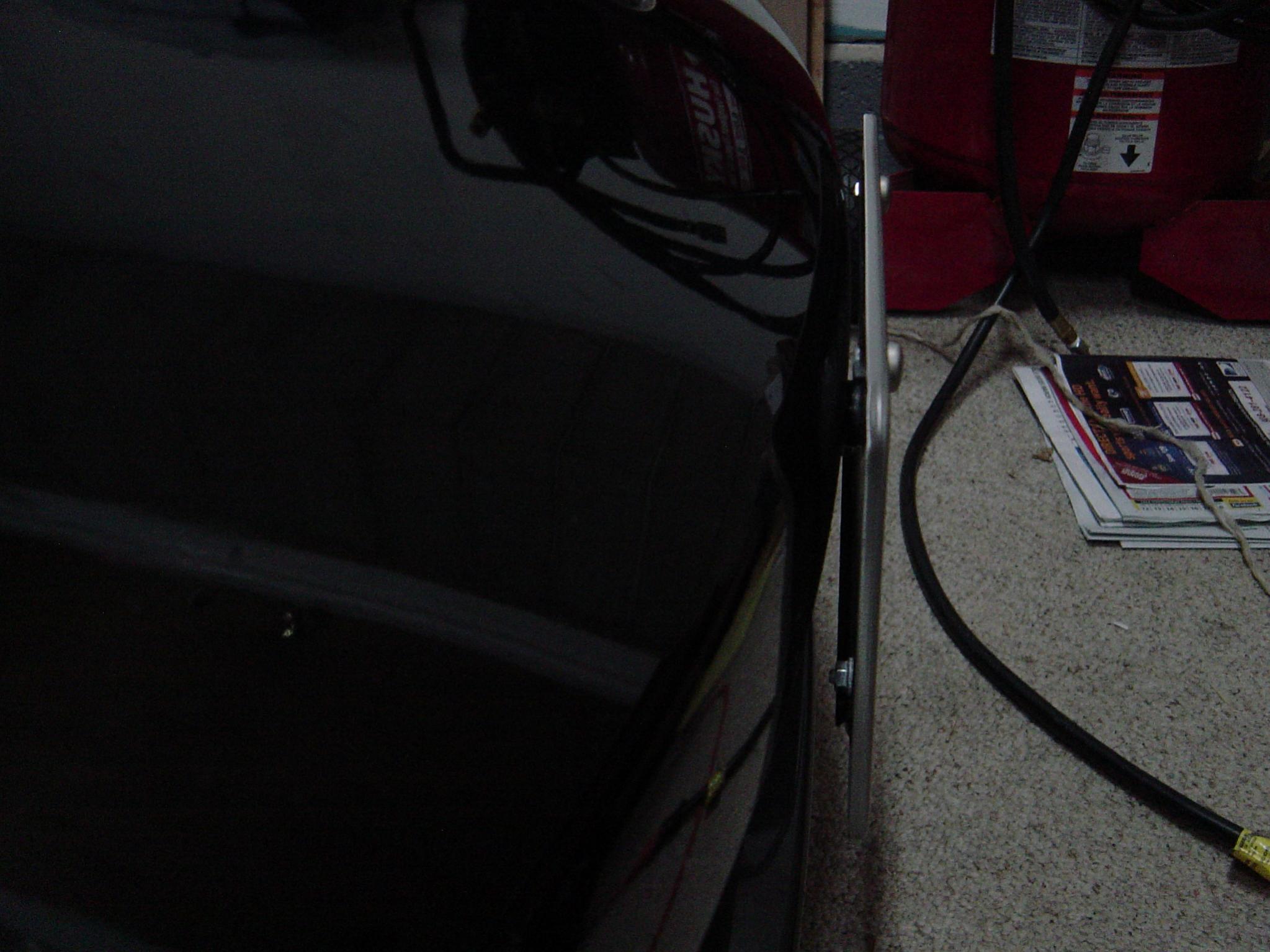 I too got a ticket for not having a front license plate and did not want to drill into the bumper. Here is my low cost solution. I chose to use industrial strength velcro to attach the front license plate and cover. The plate can be removed easily and the velcro comes right off the bumper as well.