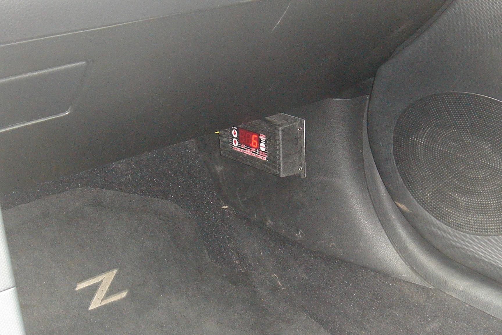 I put the bottle there to keep it off to the side and still have it in a position that the instructions wanted. The MSD was put there so I can adjust the on and off rpms whenever I wanted to since I'm not sure if I will keep it there or if I will move them around a little. It's attached to the side with some velcro so I can pull it off and adjust easily and not getting under the hood or into some special hiding spot. The buttons were going into the cubby where the smart people put them, but I wasn't trying to hide them so I put them somewhere easily reached, and they are, except that my elbow does reach them on accident sometimes while I drive. But only barely so I will keep them there.