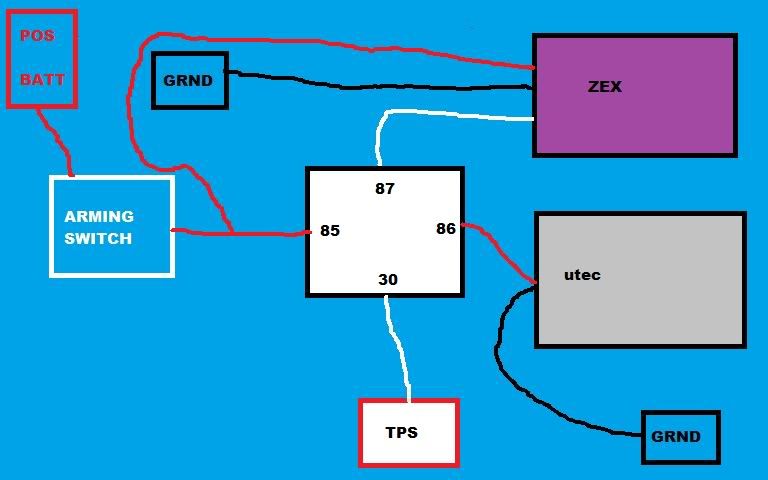 its tough to say, but my gut says no. i had a utec, but i didnt have a zex kit and i used a separate window switch. wont the utec account for both the window (rpm) signal AND the throttle position signal? if that is the case, no need to wire the tps to the relay, imo. im just trying to think through this. the whole point of a relay is to have 2 separate circuits. one low power for the switch, and one higher powered one to activate the system with a fuse.