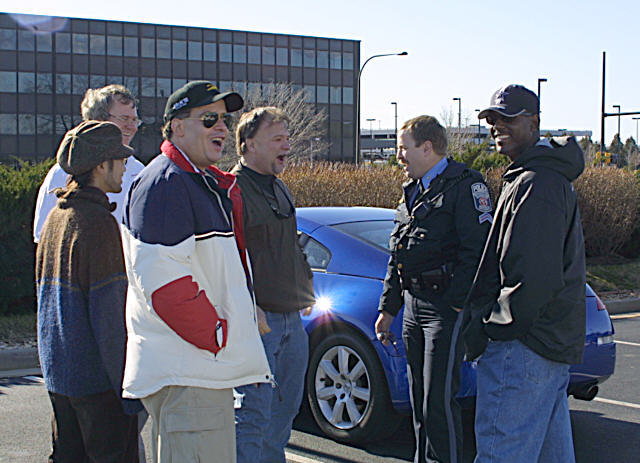 He joined our conversation for a while (despite being a Toyota fan), then we took a few group pictures, and went in to lunch at the hotel (without the cop). I think the cop hauled VaGentleman off to jail. At least he didn't come in to lunch with us. (Just kidding. He had to leave.)