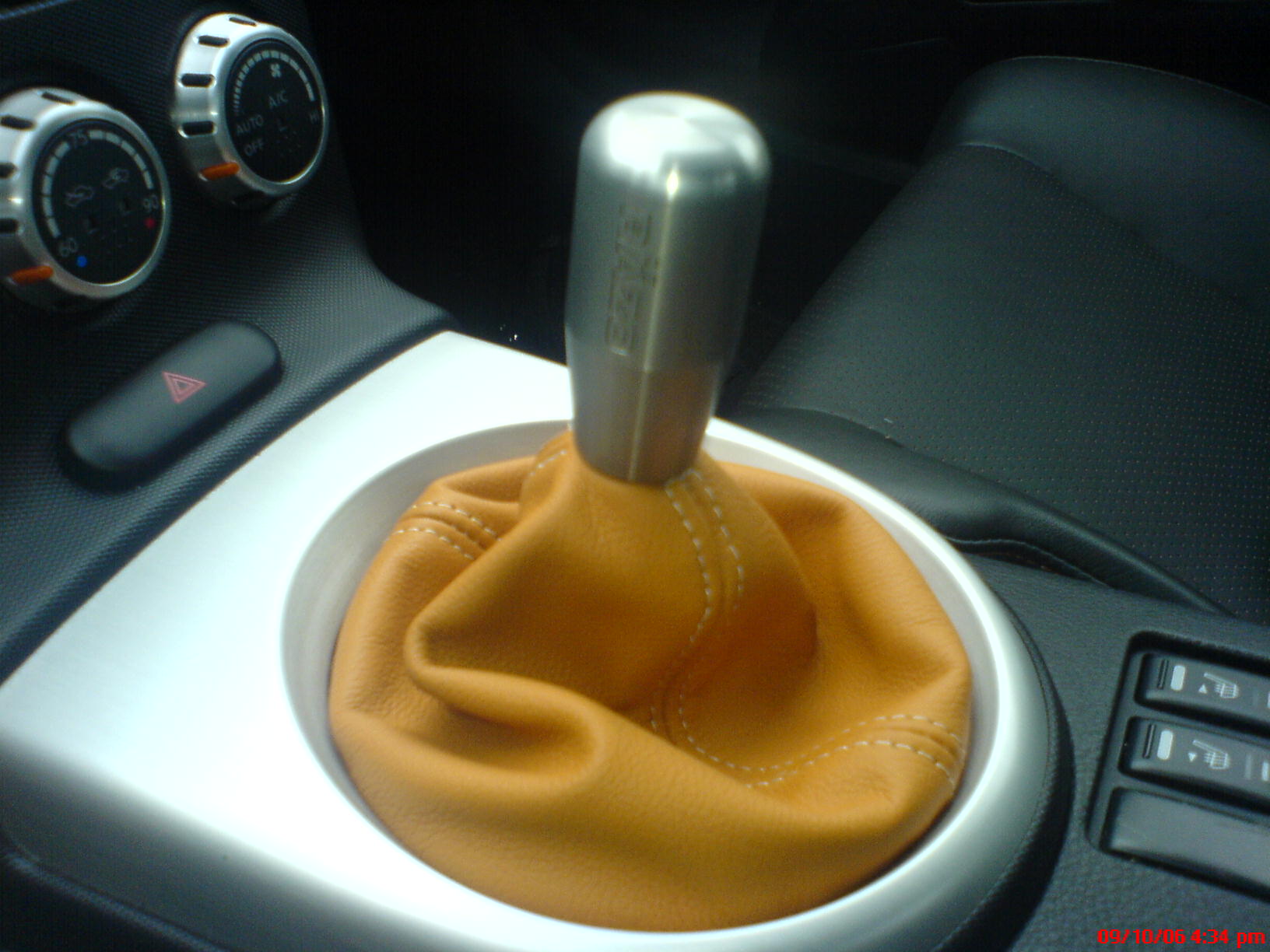 Anyway, thanks to Theatrix for helping me get my damn shift **** off. I replaced my faded boot with a factory nissan burnt orange shift boot, from a euro Z with burnt orange interior. Results attached! Looks great, even without a finisher under the shifter, I think. I would have preferred black stitching, however.