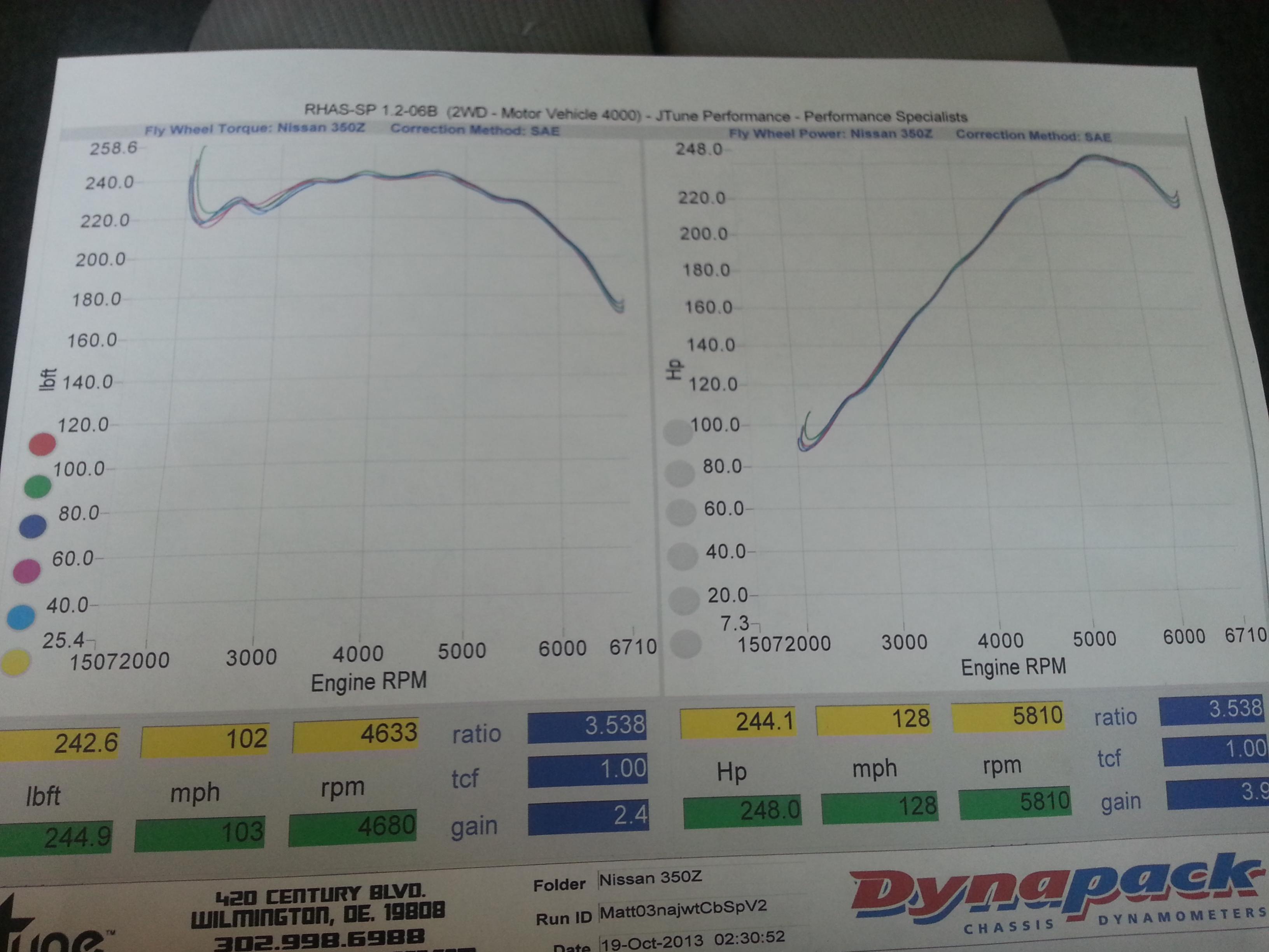 Hey guys i got my car tuned at jtune this weekend by Hok. As mentioned above he is a great tuner. The guy really knows his stuff. Nissans are definitely his specialty and hes very good at what he does. Def would recommend him. Anyways after driving the car around for a few days to really feel the difference and play around with it. I must say it feels awesome. It pulls and pulls and pulls. throttle response is great and it is very much alive and quick. I think he pulled great numbers out of it for having stock cats,de motor, and just about 100k on it. Im very happy with the results and it was the best investment ive made yet on the car.