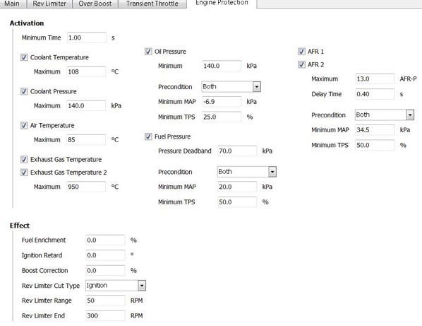 Haltech does have 'some' rescue features. I dont know much about them and I dont completely understand how they work but they seem like they are relatively comparable if you compare apples to apples. As seen in the previous posts - Haltech does have coolant temp, coolant pressure, intake air temp, exhaust gas temp, fuel pressure, oil pressure, and AFR. I believe if the engine goes outside of any parameter than it defaults to the 'effects' user-definitions on the same page.