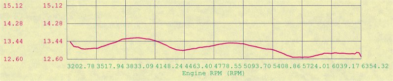 His AFR is appreciably leaner than ZBoater's which lends credence to the newer ECU being more adept at correcting it.