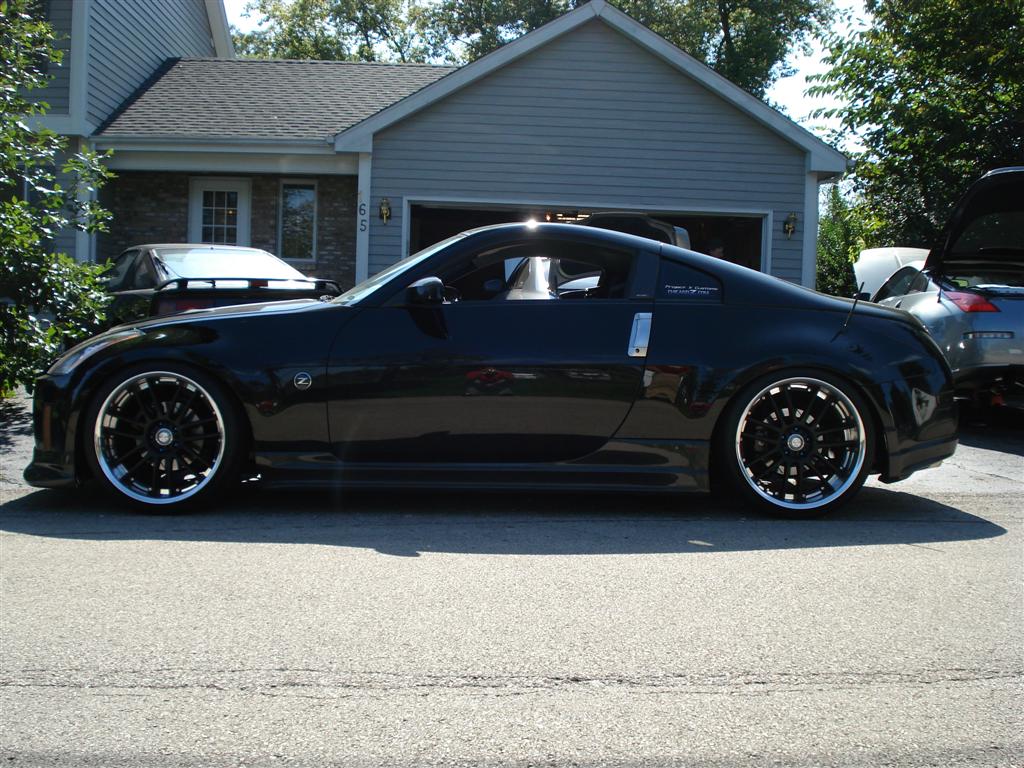 my 350z is 2004 Black. i was thinking black rims with chrome lip? i like the look of the deep rims but i dont want to have to roll my fenders and lower the car.. or is that the only way to get that look??